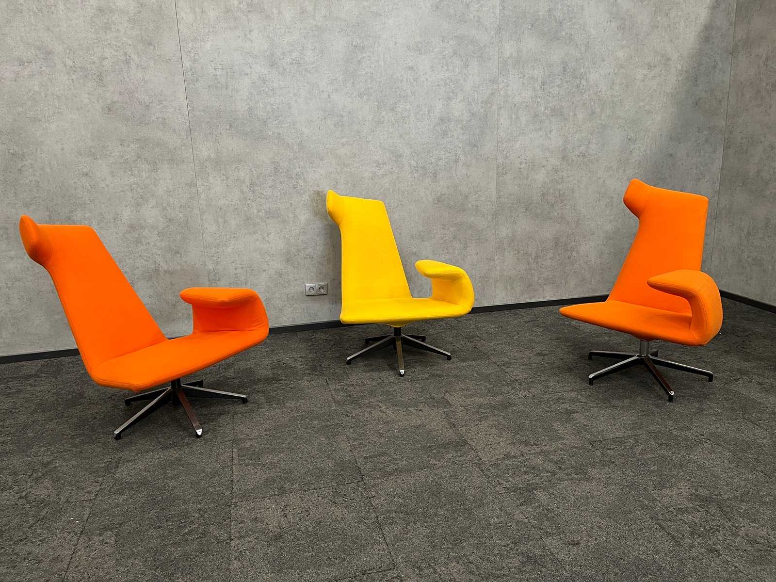 lotto composto da 3 sedie Gispen Nomi design. Design di Just Meijer. -- tavolo 1x con piano in melamina bianca e telaio in acciaio grigio. Scuro. Tabella circa Altezza x Larghezza 74x80x100 cm. Auction-ID: A1-44654-279