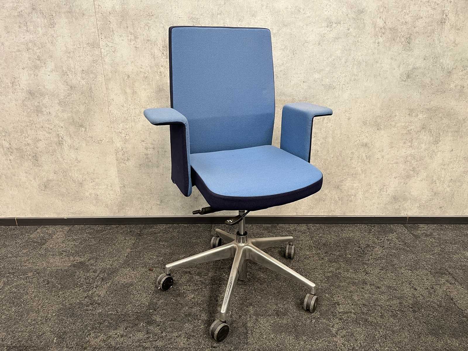 dotato di schienale regolabile in altezza, schienale con meccanismo inclinabile, altezza e profondità del sedile regolabili, braccioli regolabili in altezza, croce per i piedi cromate a 5 stelle, rivestimenti blu Auction-ID: A1-44654-158