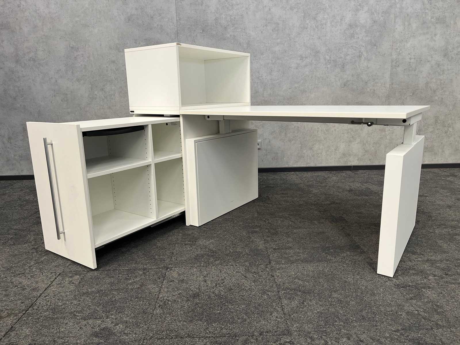 Lotto composto da una scrivania a pendolo 1x. altezza circa 65-87 cm. --- armadietto di stoccaggio 1x estensibile. Scuro. circa hxbxd 111x44x80 cm. Auction-ID: A1-44654-308