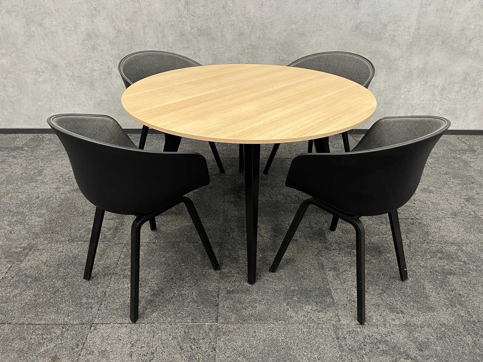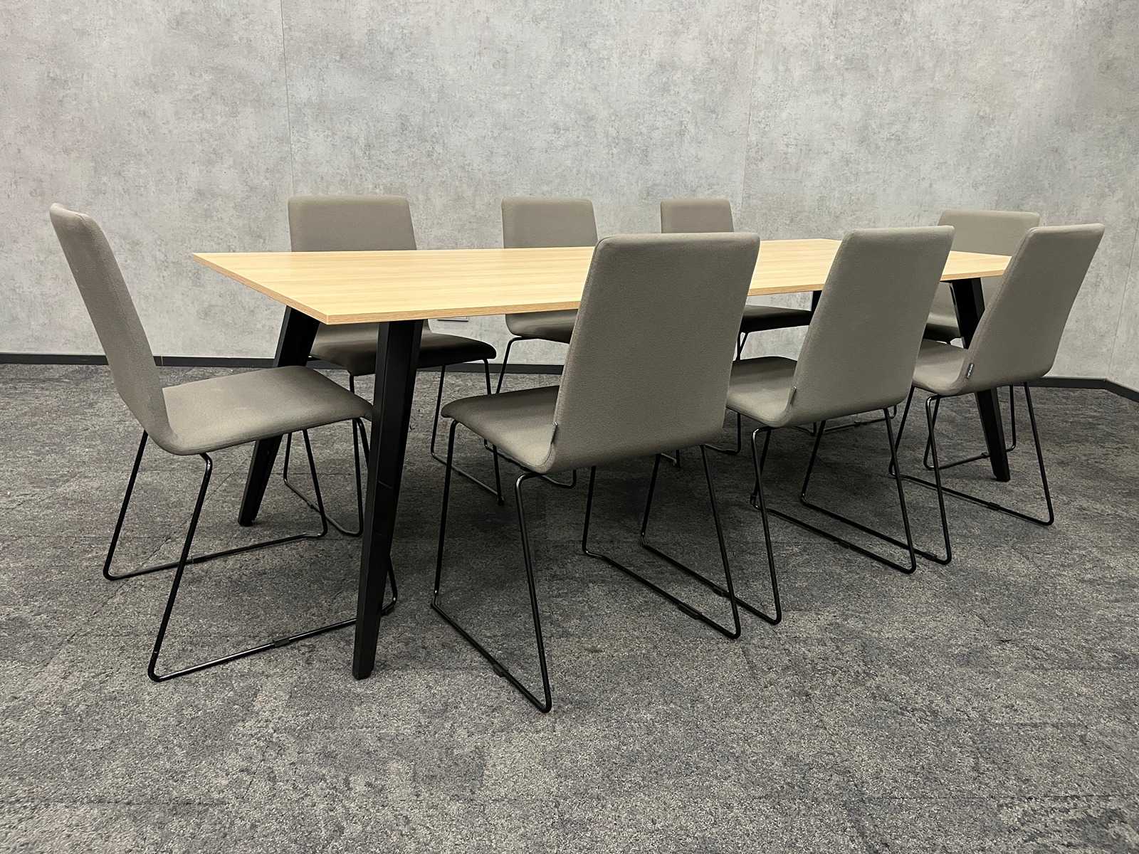 lotto composto da 8 sedie nido Narbutas Moon e un tavolo da conferenza con telaio in acciaio nero e piano del tavolo in melamina in quercia Auction-ID: A1-44654-84