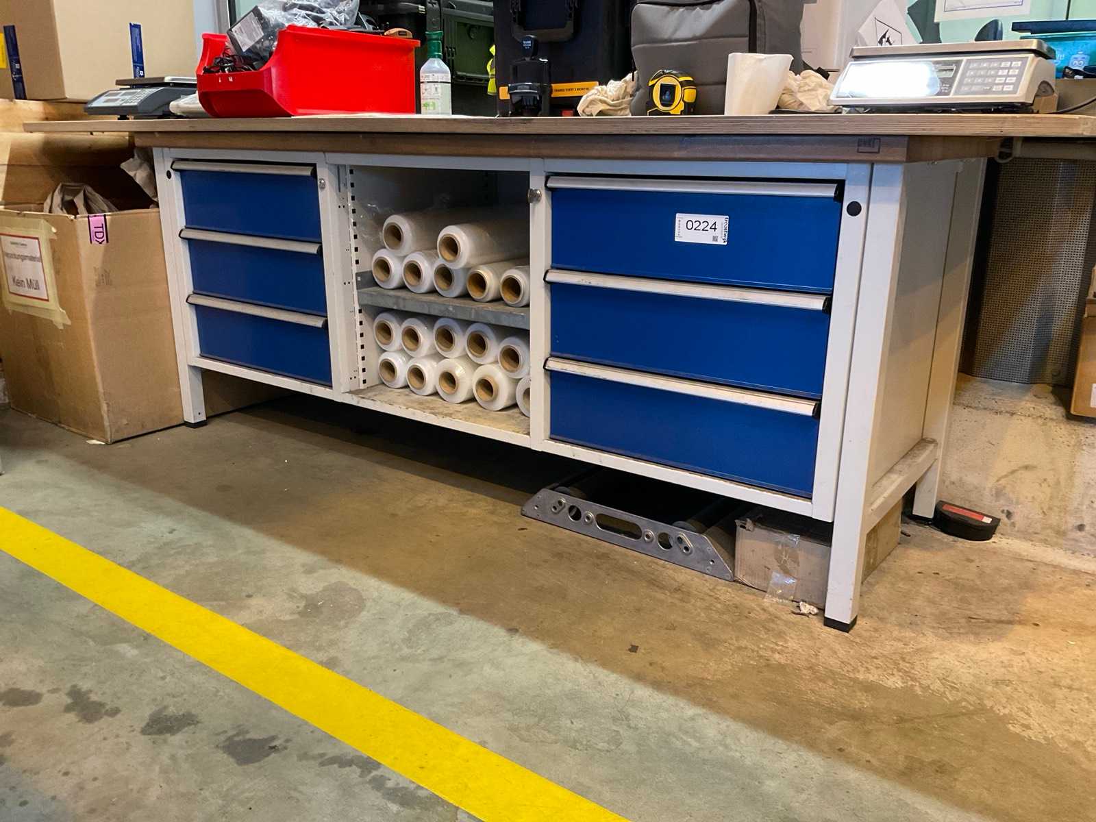 Con 2 cassetti da 3 cassetti, un lato con la chiave e un lato aperto, ma con la serratura rotta. Dotato di piano di lavoro aggiuntivo, dimensioni approssimative 280x109x3 cm. Auction-ID: A1-45495-224
