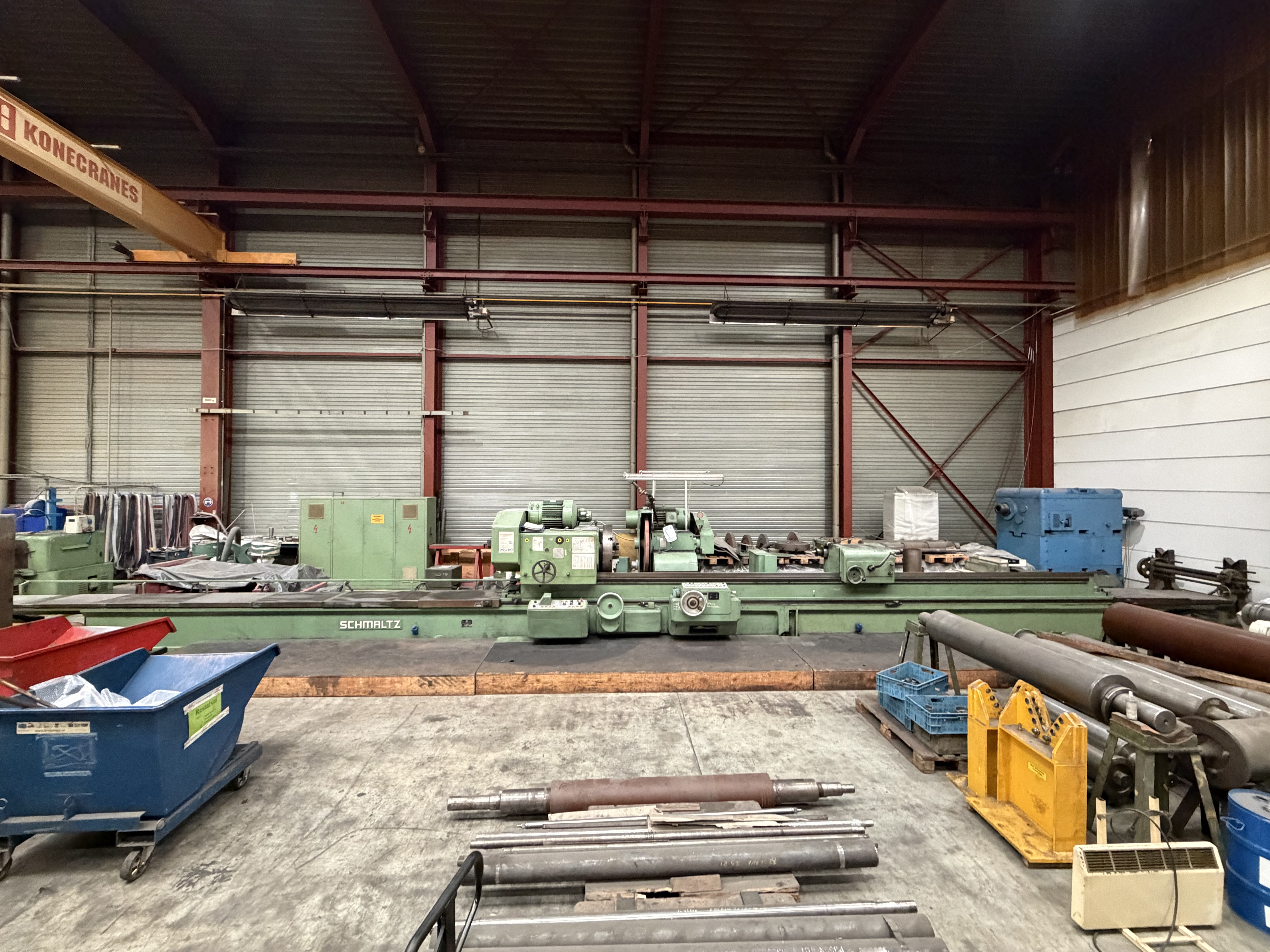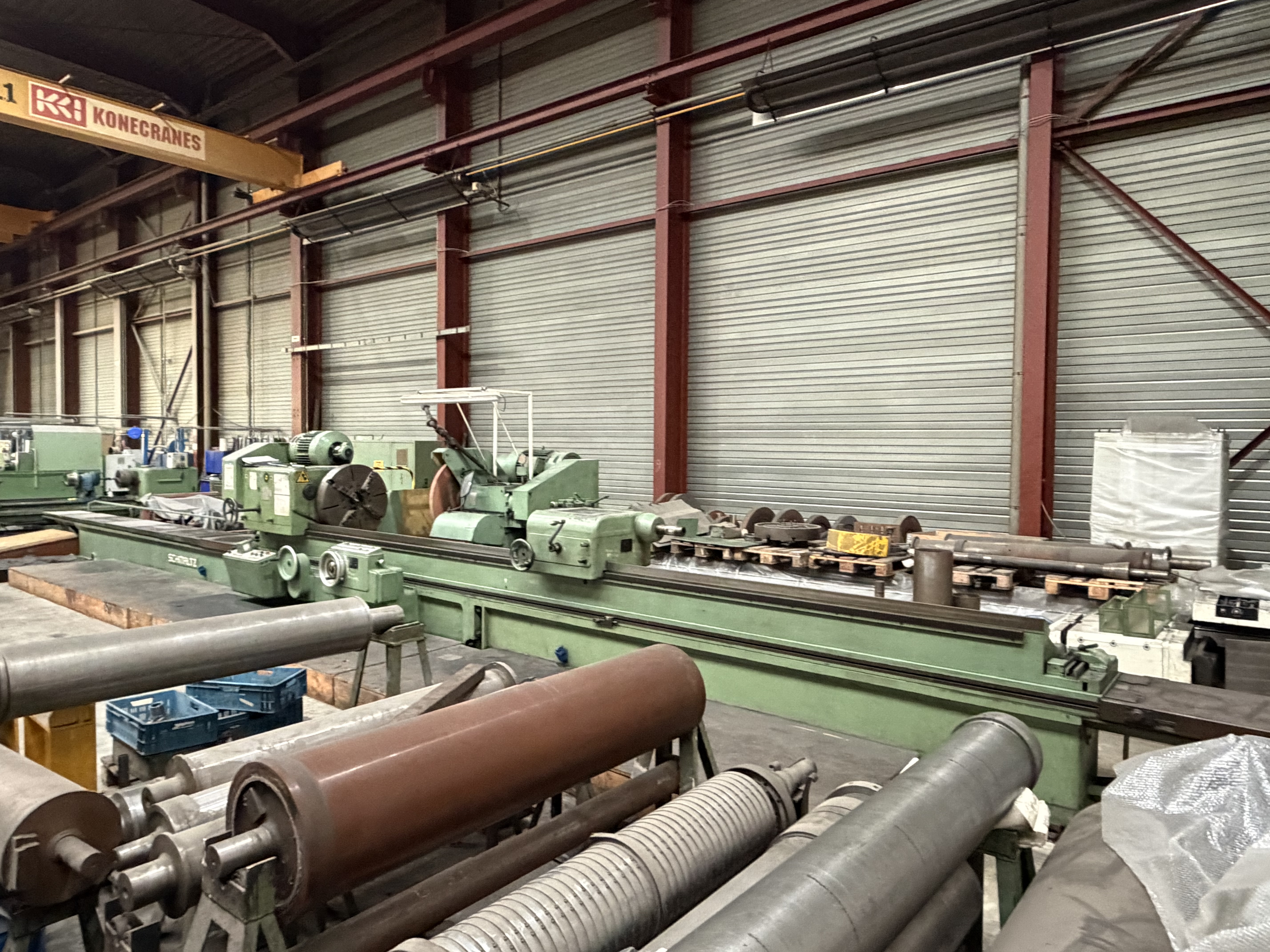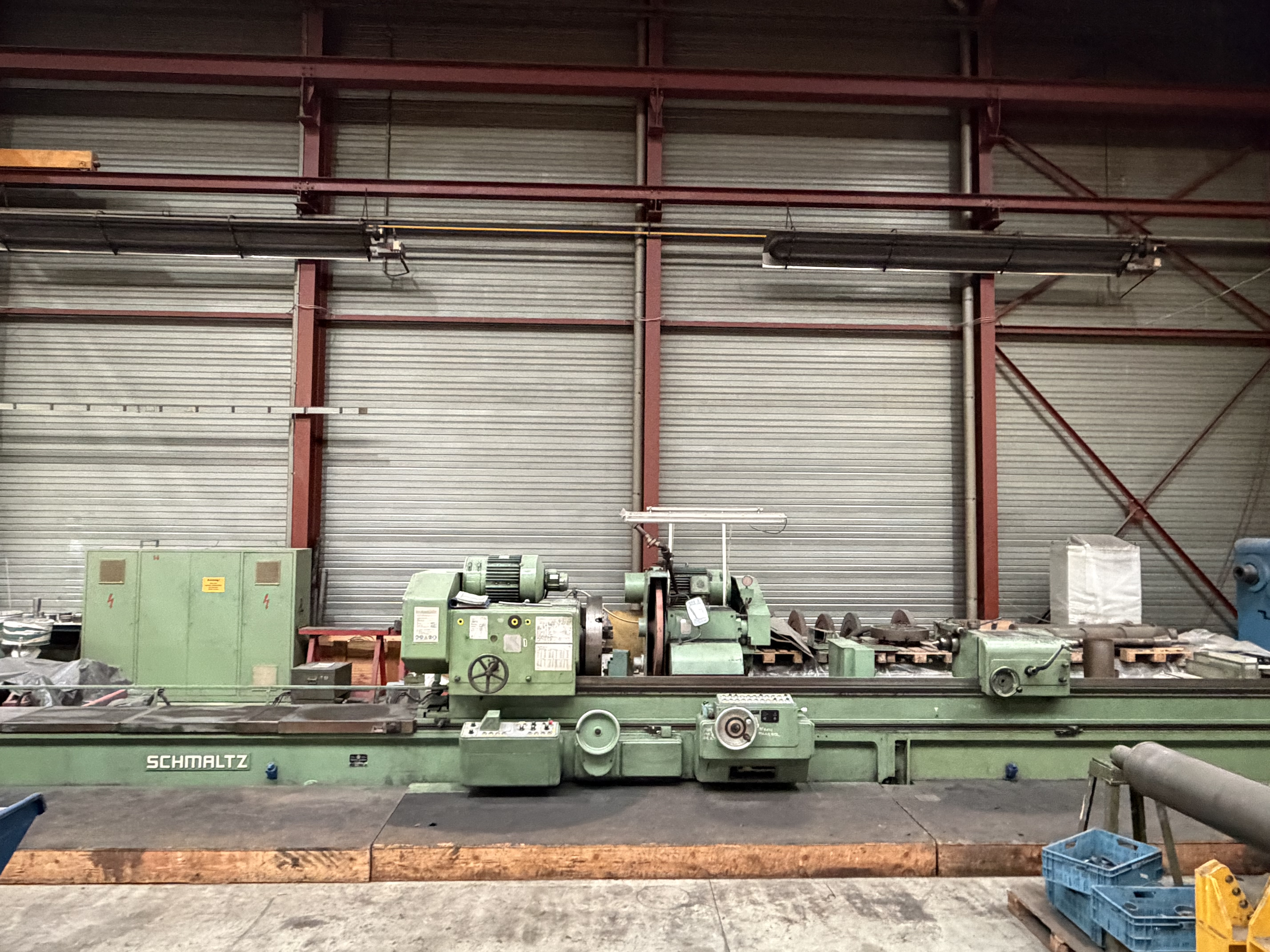grinding length: 4000 mmgrinding width: 1450 mmworkpiece height: 1250 mmcontrol: Siemens 840 D workpiece weight: 11000 kgcolumn daylight: 1460 mmtable surface area: 4000 x 1250 mmtable feed: 1 - 45 m/mincross rail - adjustment: 1250 mmtotal power requirement: 40 kWdimensions of the machine ca.: 12,3 x 6 x 4,8 mEquipment/Accessories:- 1 universal grinding support, 7.5 kW Swivel range grinding spindle +/- 110° grinding disc dimensions Ø 500 x 60 mm Vertical adjustment 350 mm with puller- 1 peripheral grinding support, 22.5 kW Grinding wheel dimension Ø 600 x 100 mm Vertical adjustment 150 mm with puller- with 6 magnetic plates arranged on the table- seperate clamping table - various grinding wheels and flanges- Technical documentationThe data for this ad was created with ModulMWS - the software solution of LogoTech oHG.