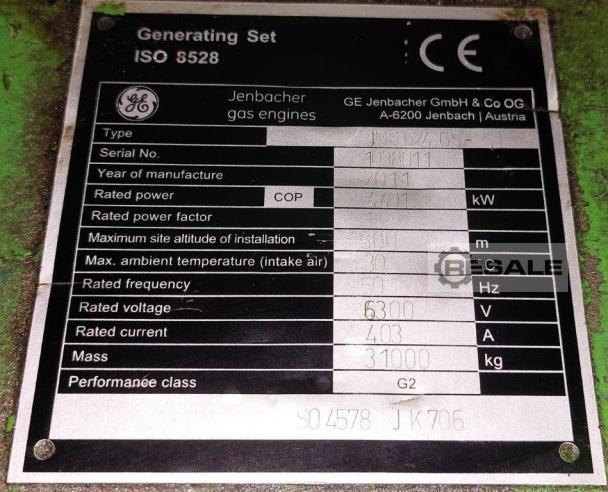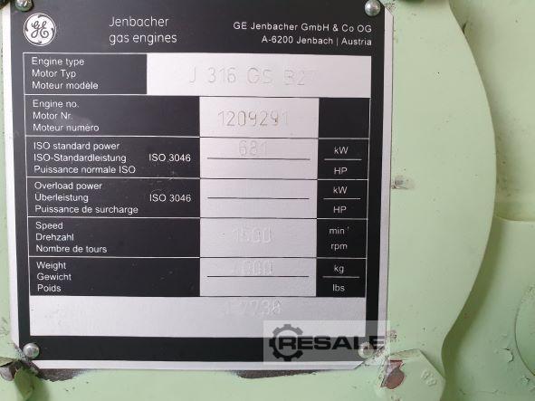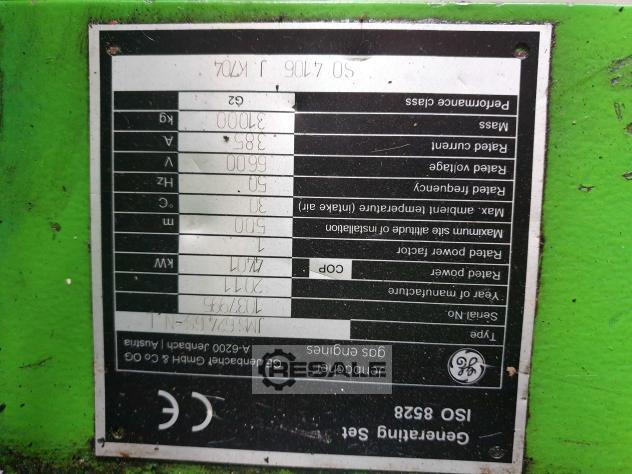 NATURAL GAS GENERATOR JENBACHER, TYPE JMS616GS-N.L. -BRAND: JENBACHER -YEAR: 2009 -OPERATING HOURS: 51.000 H -ELECTRICAL EFFICIENCY: 44%. -ALTERNATOR: STAMFORD 10.5Kv. -FREQUENCY: 50 Hz. -RATING: 3.030 kVa. (2.425 KwE) -SPEED: 1,500 RPM. -FULLY SERVICED BY JENBACHER DEALER. We usually have ready in stock of used gas Gen-set brands (Cummins, Perkins, Caterpillar, Waukesha, Deutz MWM, MTU, Jenbacher), etc... 800Kwe current range up to 3.000 Kwe, as a research most welcome to contact US.