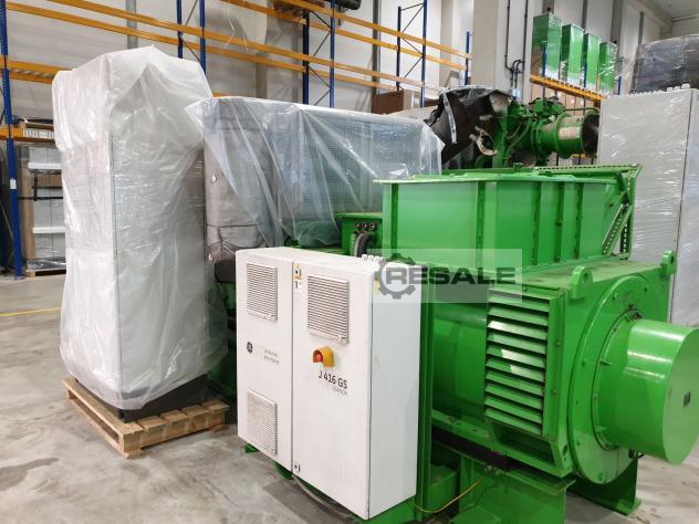 2x Jenbacher gas engines JMS 312 built in 2008, with brand new generator, exhaust gas heat exchanger next to the engine, additional oil tank. No NOX control. Modules are stored and preserved, location Schleswig, Holstein, modules immediately available, ideal as exchange modules in the event of inspections or fire damage.
