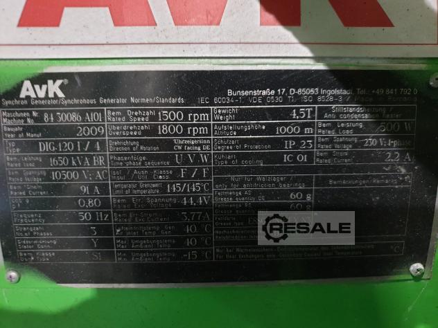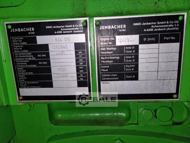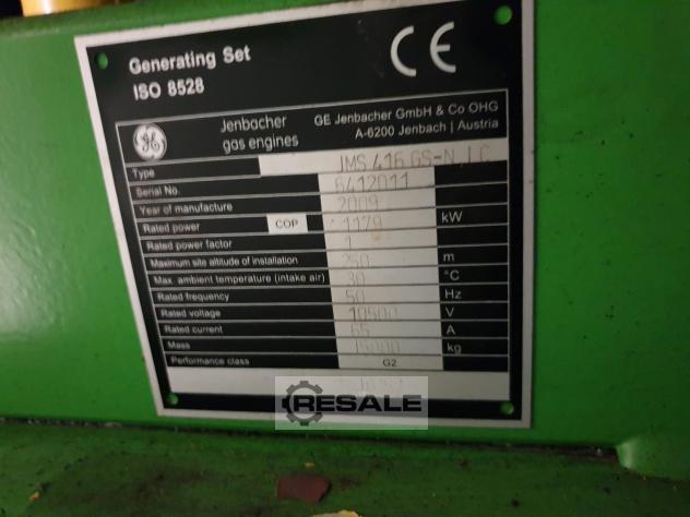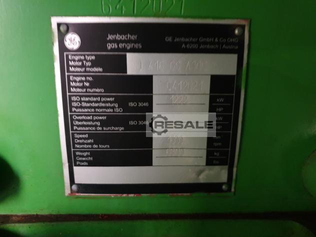 Dear Madam / Sir,, we have following Jenbacher Gas Engine available for Sale: Engine Manufacturer Jenbacher Engine Model J 416 GS Engine Version A305 Unit Serial No. 6412011 Engine Serial No. 6412021 Fuel Gas Natural gas YOM 2009 Power output (kWel) 1179 Mechanical output 1222 Engine Control System Diane XT Operating hours 68.000 Alternator Make AVK Alternator type / model DIG 120 I / 4 Alternator Serial No. 8430086 A101 Alternator Rating [kVA] 1650 Alternator Voltage [V] 10500 Frequency [Hz] 50