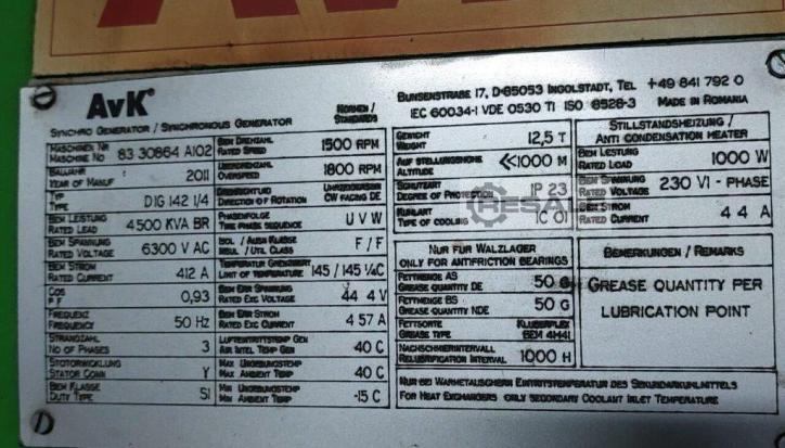 Key data: 4401 KW, 4500 kVA, 6 V