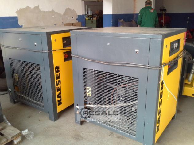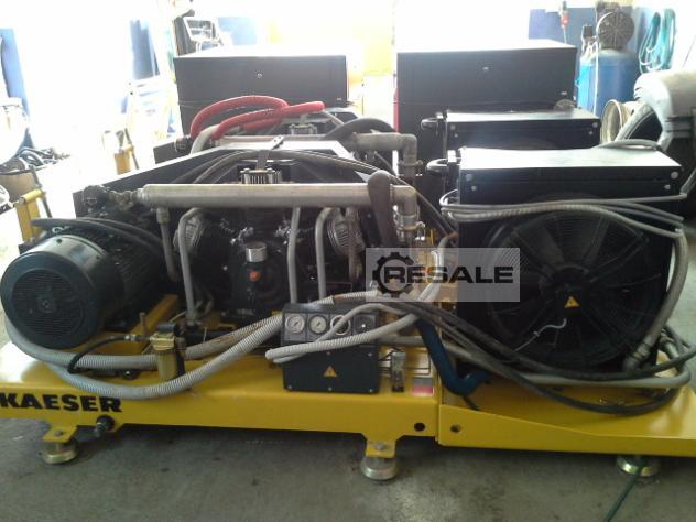 В наявності два компресори Kaeser. 1) Kaeser CSD 102 T SFC, рік випуску: 2002, номінальна потужність: 55 кВт, робочий тиск: 8,5 бар, холодоагент: R134a, кількість холодоагенту: 3,1 кг, години роботи: приблизно 132150 год, години завантаження: приблизно 129858 год. 2) Kaeser BS 61, рік випуску: 2001, номінальна потужність: 31 кВт, максимальний робочий тиск: 8 бар, мотогодини: 91889 год, мотогодини: 78711год. Документація в наявності. Можлива перевірка на місці.