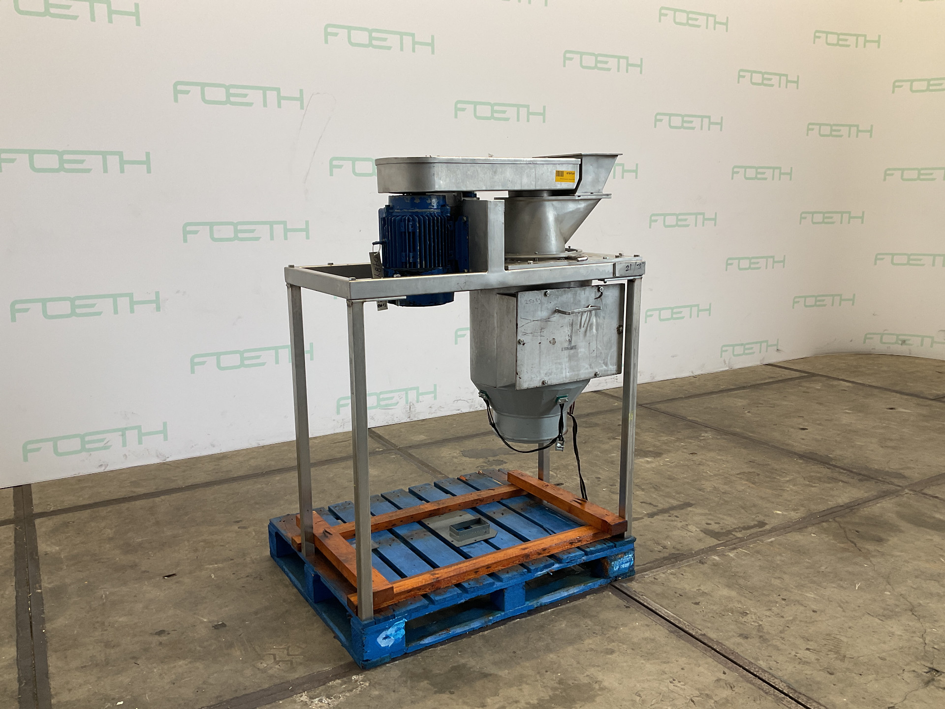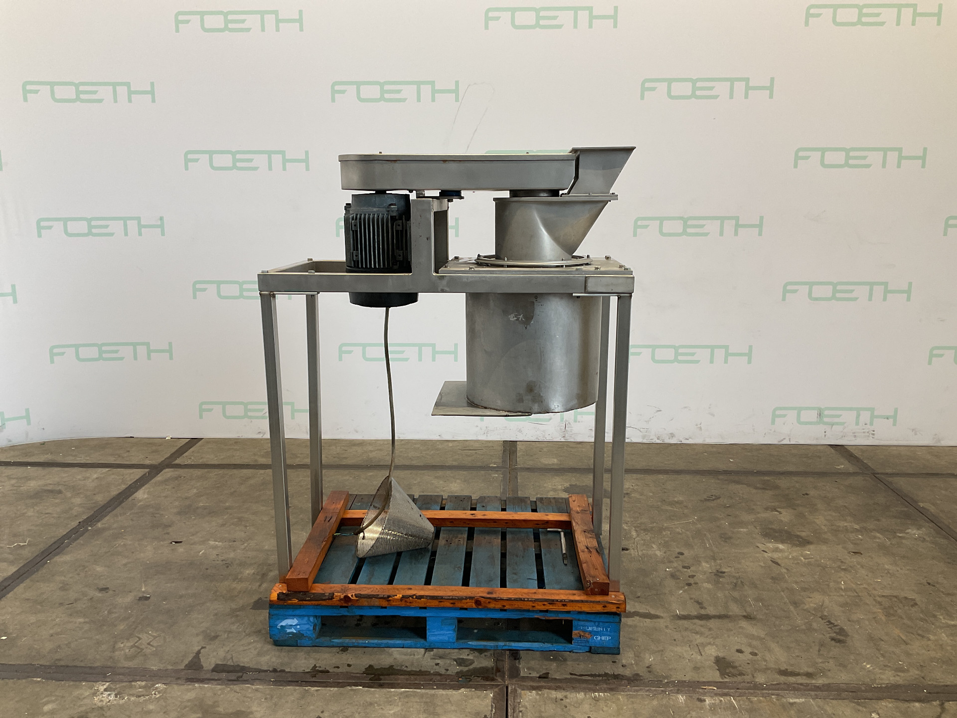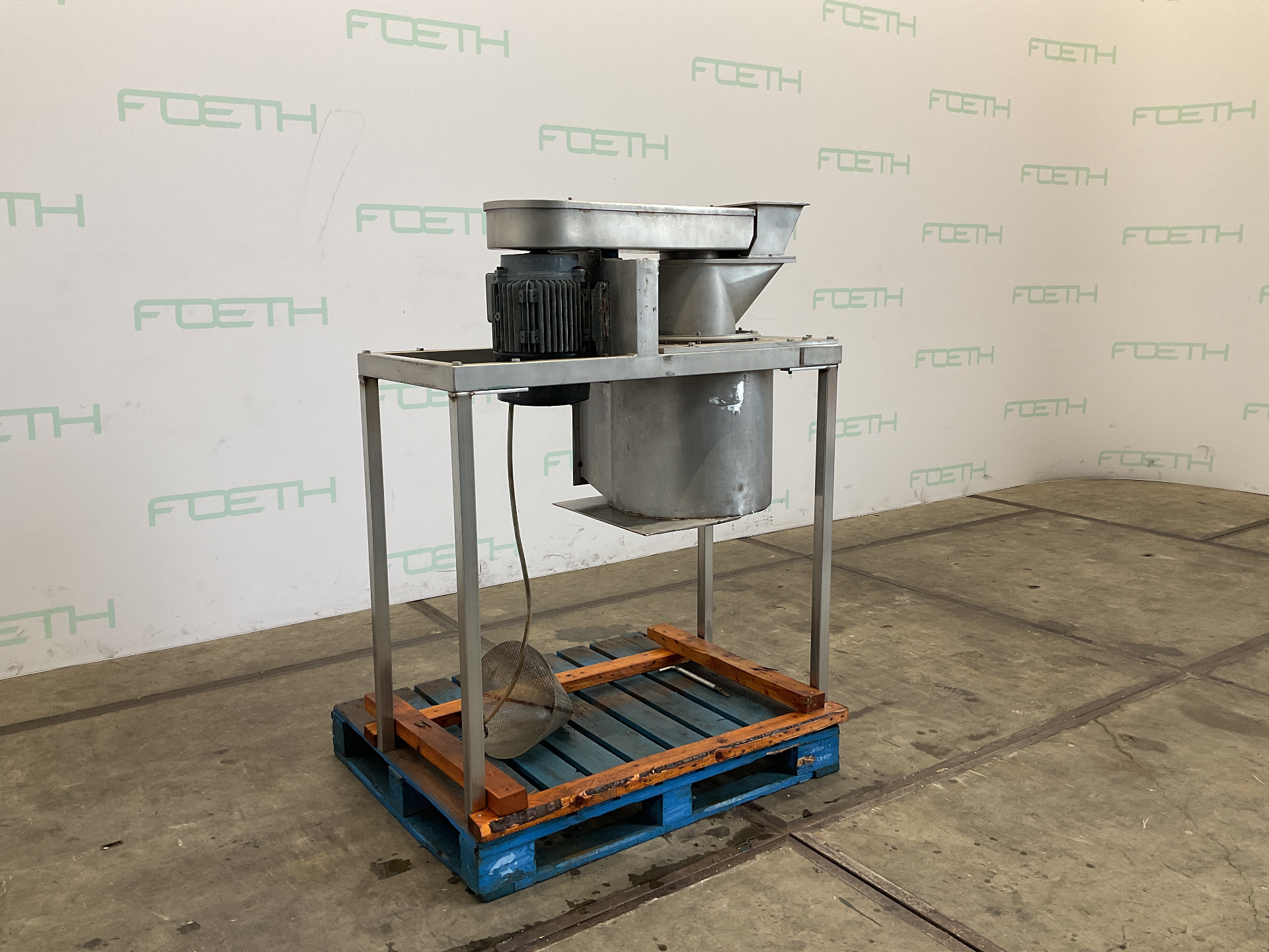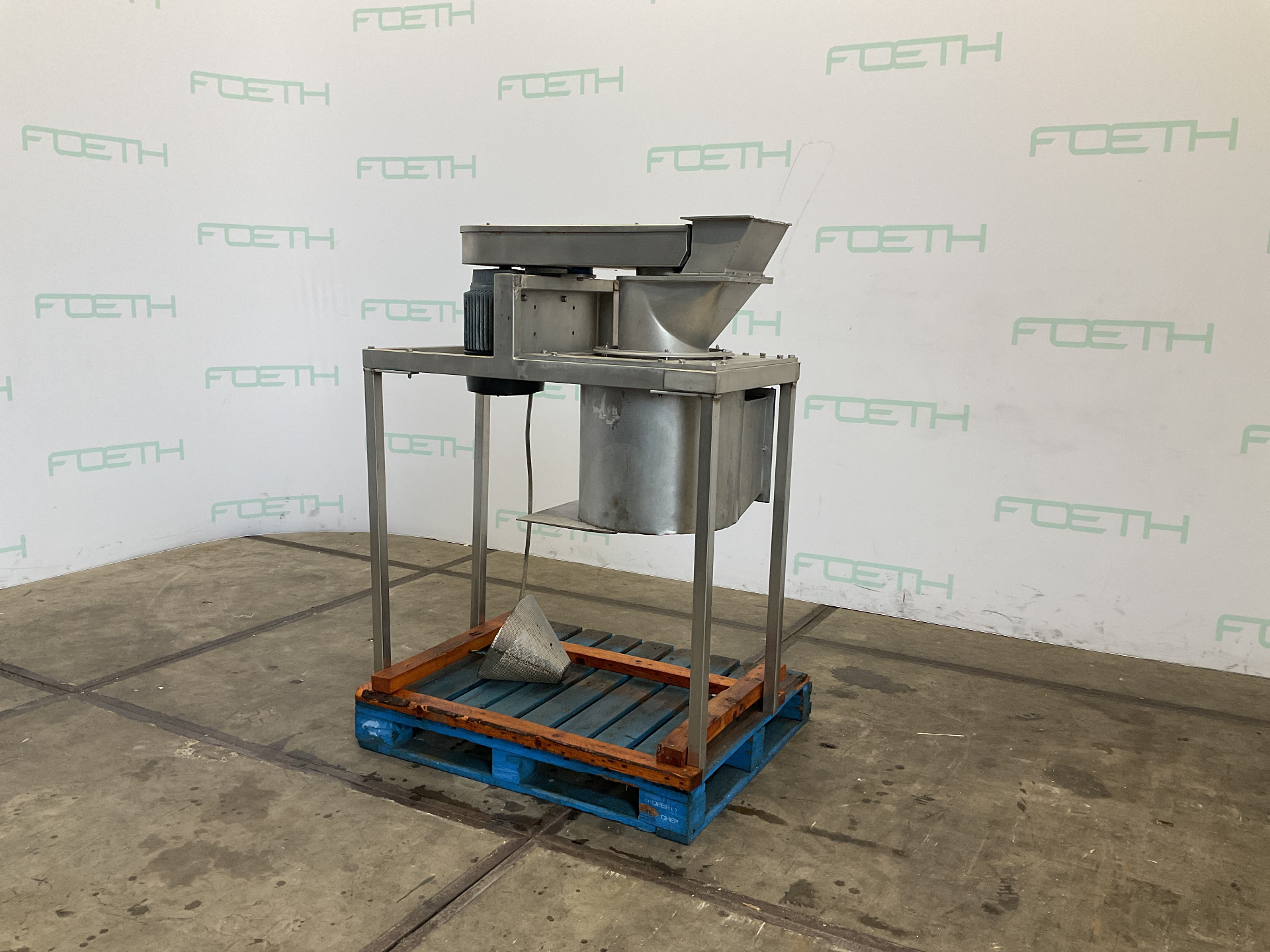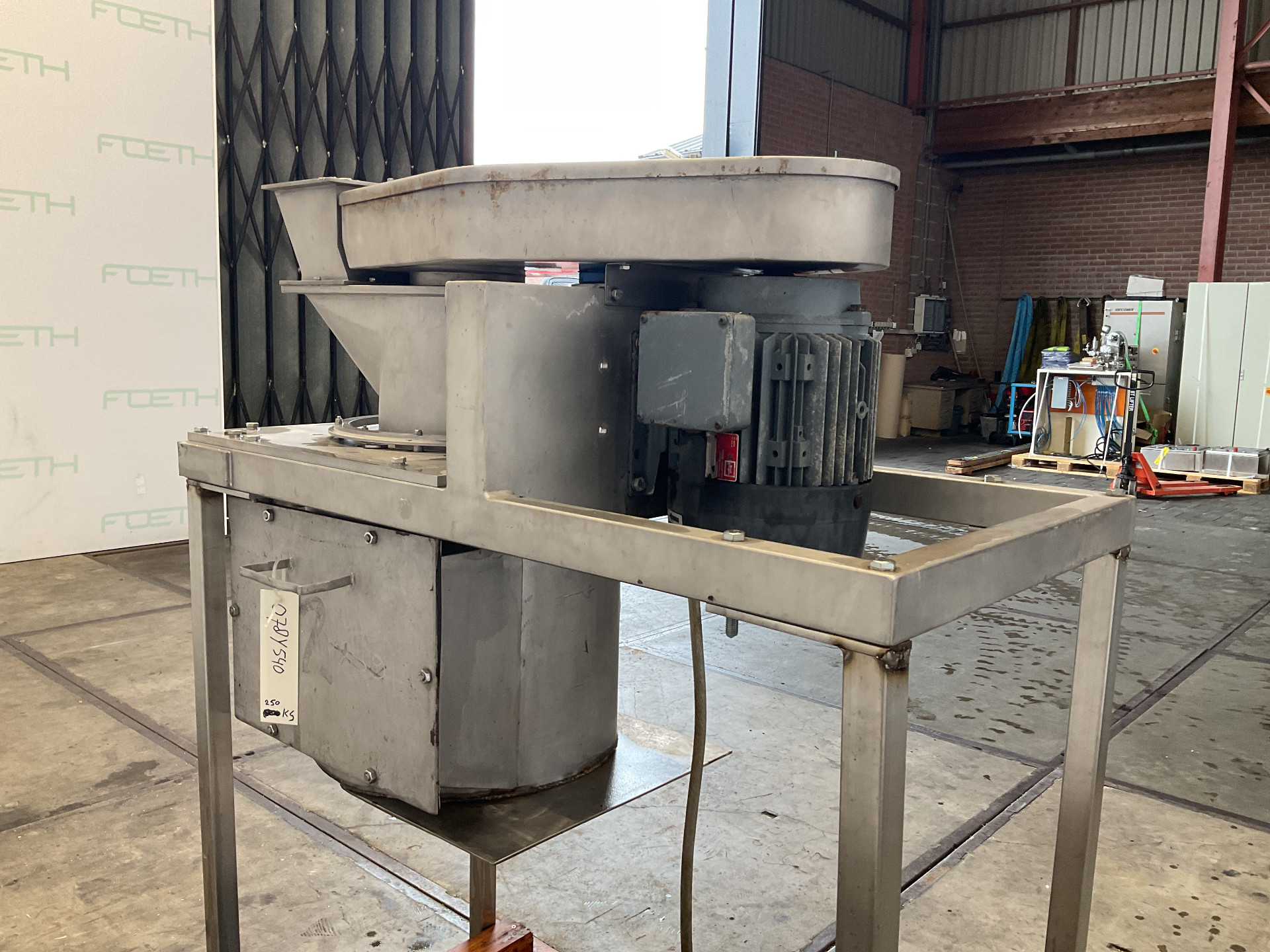 General SKU239N131 LocationBarneveld Main Features MaterialStainless steel Motor7.5 KW Width300 mm Specified Features - Sieve granulator MaterialStainless steel Conical granulating sievecheck Rotor sizes280mm Sieve sizesdia. 300mm x250mm Sieve perforation1mm Inlet370x170mm Outletdia. 520mm Motor7,5 kW 380 Volt Information Floor space1,4x0,7m Total height0,8m Weight340kgSieve granulatorsKek KemutecSieves > Sieve granulatorsBrand > Kek Kemutec What you can expect from Foeth: -- Machine is in working condition -- At a reduced price compared to new -- Ready for shipping to any destination worldwide -- You are welcome to inspect the machine in Barneveld, The Netherlands. Please visit us in Barneveld for many more machines!