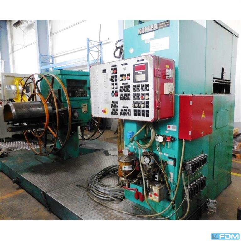 CONTROLS PLC SIEMENS S5 115U OVERALL SPECIFICATIONS (COIL LINES) sheet width max.: 140 mm sheet thickness max.: 6 mm coil weight max.: 3 to COIL CHAIR coil weight max.: 3 to stroke: 500 mm DECOILER design: single reel sheet width max.: 300 mm coil weight max.: 3 to max. diameter of coil: 1300 mm mandrel expansion range from: 360 mm mandrel expansion range up to: 430 mm LEVELLER UNIT sheet width max.: 140 mm sheet thickness max.: 6 mm sheet thickness min.: 3 mm number of leveller rolls: 21 diameter of leveller rolls: 50 mm feed velocity max.: 43 m/min ELECTRICAL SPECIFICATIONS total power consumption: 35 kW KOHLER coil line consisting of: - Coil loading chair CS ...