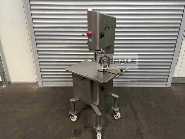 Piła taśmowa do kości KOLBE K260 Specyfikacje: Typ: Kolbe K 260 400 V / 50 Hz / 1,1 kW / 3,1 A Rok produkcji: 2017 Przejście boczne cięcia max.: 215 mm Max. wysokość koszenia prześwit: 250 mm Wymiary stołu: dł. 46 x gł. 70 cm Wymiary maszyny: H160 x W60 x D70 cm Wymiary brzeszczotu: 2170 x 16 mm Waga: ok. 115 kg Sprzęt: Urządzenie w całości ze stali nierdzewnej Rama podstawowa ze stali nierdzewnej na 2 kółkach skrętnych z hamulcem i 2 kółkach stałych Stół roboczy można rozłożyć w celu łatwiejszego czyszczenia (wyposażenie opcjonalne!) Popychacz materiału (zdejmowany) Prowadnica boczna (zdejmowana) Pojemnik na mączkę kostną (wyjmowany) Dostawa lewostronna Ochrona Hamulec silnikowy Sprawdzone działanie, maszyna natychmiast gotowa do użycia Maszyna magazynowa, dostępna od zaraz! Stan ...