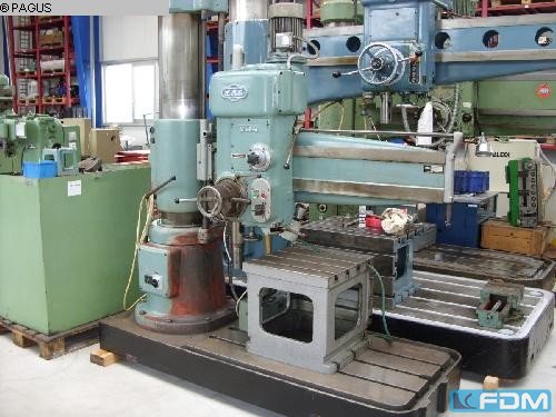 bore capacity in steel (diameter):40 mm arm length:1200 mm workpiece height max.:1227 mm surface area:1475 x 900 mm no. of flutes:3 groove width:25/ 50 mm spindle cone:MORSE 4 number of spindle speeds:45- 2800 U/min spindle headstock:Bew.Arm : 945 mm with vertical adjustment:Arm 710 mm spindle diameter:35 mm bore depth:300 mm total power requirement:3,0 kW weight of the machine ca.:2800 kg dimensions of the machine ca.:2290 x 910 x 2860 mm