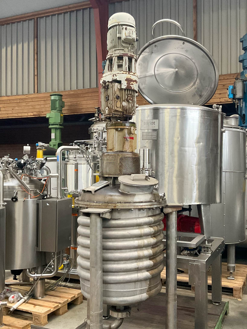 General SKU012Y112 MakeUTV Chemie Equipement S.A. TypeM-40 SL No.3782 Year of construction1993, Reconditioned in 2003 by RPA Process LocationBarneveld Pressure Working pressure0 Bar Vacuum possiblecheck Working pressure jacket4 Bar Main Features MaterialMild steel Volume250 Ltr. Motor45 KW Specified Features - Z-blade mixer MaterialMild steel Z-blade mixer(1x) Capacity400 Ltr, Useful capacity 250 Ltr Trough sizes845x700x750mm With covercheck With jacketcheck Single gearedcheck With adjustable packing glandscheck Motor45,0 KW (Ex) Arm speed± 15,5/22 Rpm Hydraulic tiltingcheck With hydraulic unitcheck Information Floorspacemixer without drive unit 2,2x1,1 M Total height1,8 M ATEX compatiblecheckStarchOther chemicalRubberPlastic & polymersZ-blade mixersCatalysts & fillersFeed additivesPaper & otherDiscountDetergent & surf.Other pharmaceuticsCosmeticsSugarLub ...