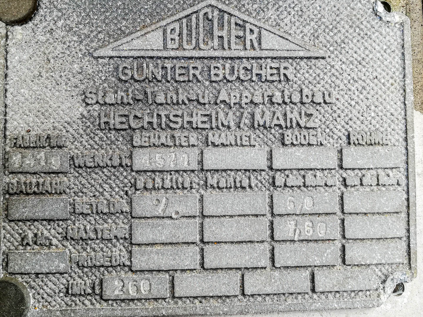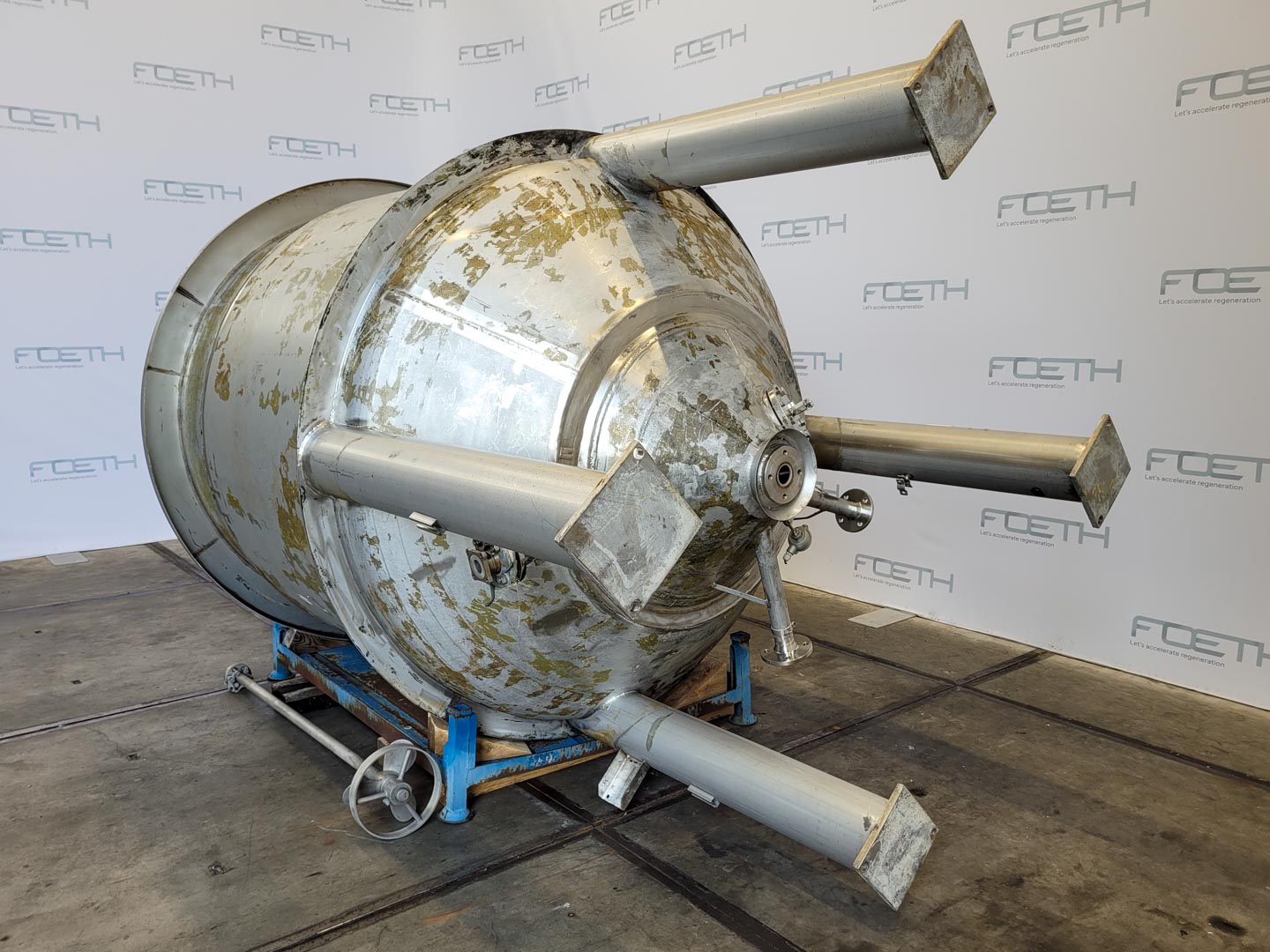General SKU011U177 LocationBarneveld MakePaul Schwingel No.8183-3 Pressure Working pressure3.2 Bar Vacuum possiblecheck Number of vertical pressure tanks1 Main Features MaterialStainless steel Volume23120 Ltr. Pressure3.2 Bar Vacuumcheck Specified Features - Pressure vessel MaterialStainless steel 1.4571 (316Ti) Capacity23.120 Ltr Vessel sizesdia. 2400x4000mm Dished topcheck Dished bottomcheck Manholedia. 600mm Top connections6x dia. 100mm + 2x dia. 150mm Outletdia. 150mm + dia. 100mm Max. temperature65 Degr. C. Information Year of construction1986 Floorspace2,8x2,8 M Total height5,5 M Weight4800 KGPressure vesselsDiscountPaul SchwingelTanks > Pressure vesselsDiscountBrand > Paul Schwingel What you can expect from Foeth: -- Machine is in working condition -- At a reduced price compared to new -- Ready for shipping to any destination worldwide -- You are welco ...