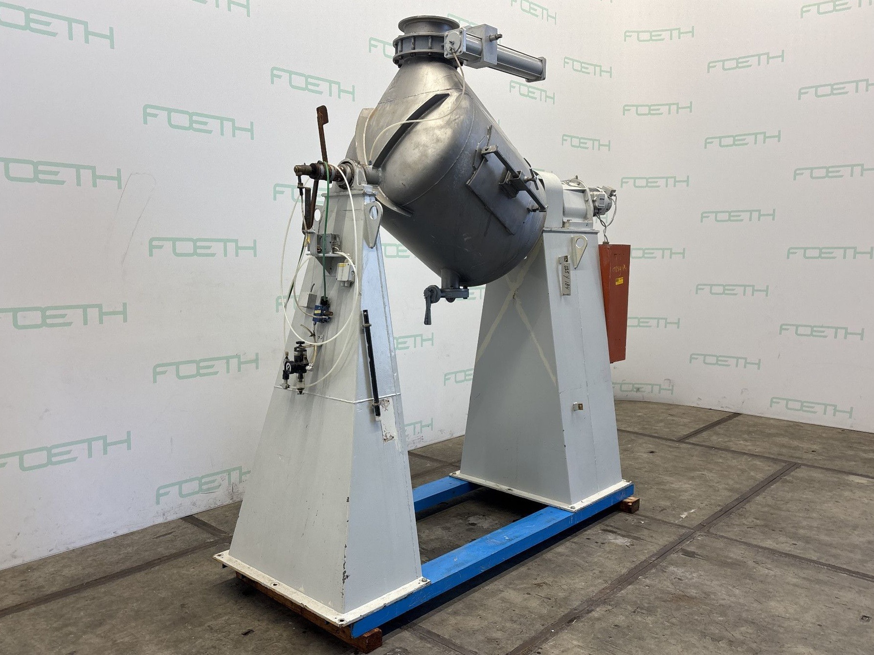 General SKU024B115 LocationBarneveld MakeServolift/Scholl TypeNG-1200 No.90117 Main Features MaterialStainless steel Volume800 Ltr. Specified Features - Tumbler mixer MaterialStainless steel 1.4301 (304) Tumbler mixerSystem Sandoz-Scholl (1x) Polished insidecheck Capacity1200 Ltr, Useful capacity 800 Ltr Diameter1400mm Length/Depth1900mm Inlet/manhole dia. 390mm Outletdia. 250mm With motor(hydraulic drive unit) 7,5 KW, 380/660 Volt Information Year of construction1990 With switchgearcheck Floorspace1,4 x 1,6 M (+ 1,4 x 0,7 M hydr. unit) Total height4,8 M Weight1500 + 370 KGTumbler mixersDiscountServoliftMixers > Tumbler mixersDiscountBrand > Servolift What you can expect from Foeth: -- Machine is in working condition -- At a reduced price compared to new -- Ready for shipping to any destination worldwide -- You are welcome to inspect the machine in Barneveld, The ...