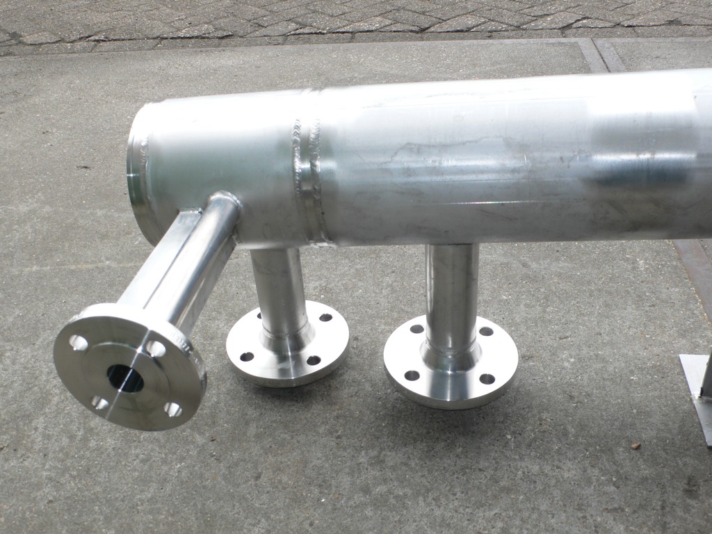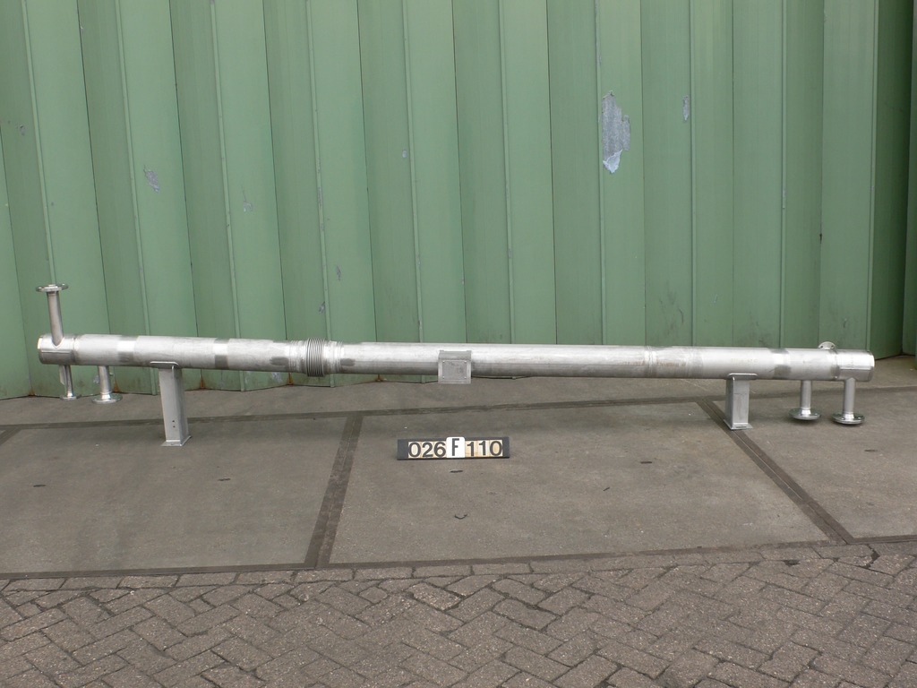 General SKU026F110 MakeFreude Titan GmbH & Co. KG Sinsheim No.18414 Year of construction2010 Mounted on legscheck Pressure Working pressure shell0.5 Bar Working pressure tubes3 Bar Tubular vacuum possiblecheck Main Features Shell (Material)Stainless steel Tube (Material)Hastelloy Surface13 m2 Specified Features - Shell and tube heat exchanger MaterialStainless steel 2.4602 (Hastelloy C-22) Heat exchangercheck Horizontalcheck Notified bodycheck Heating surface13 m2 Tube capacity2x 15,5 Ltr Number of tubes:106 Tube diameter10mm Tube length4000mm Wall thickness tubes1 mm Max. temperature-196/+100 Degr. C. Shell capacity51 Ltr Max. temperature-196 / +100°C Shell with expansion jointcheck Shell connections2x dia. 50mm Cover connections2x dia. 50mm + 2x dia. 25mm Information LocationBarneveld Floorspace4,5x0,4 M Total height0,9 M Weight200 KG CEcheckTea, h ...