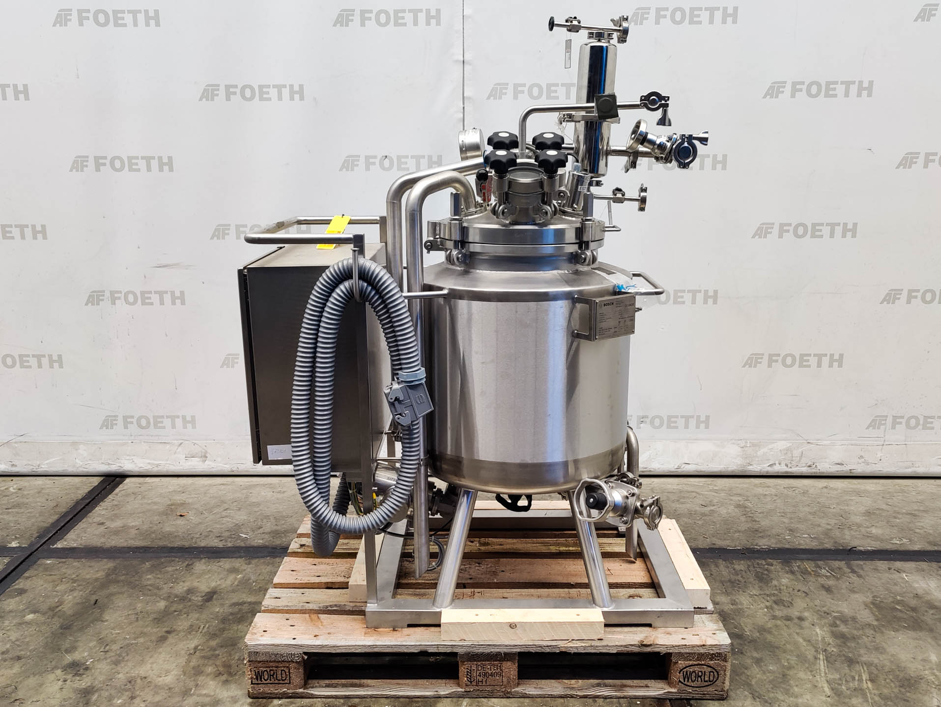 General SKULT007 MakePharmatec GmbH/ Syntegon Technology / Pepperl+Fuchs LocationGermany CEcheck TypeSolvent Tank Pressure Working pressure3 Bar Vacuum possiblecheck Working pressure jacket6 Bar Vacuum possible jacketcheck Main Features MaterialStainless steel Volume120 Ltr. Motor0.12 KW Specified Features - Stainless Steel Reactor Reactorcheck Capacity120 Ltr (150 Ltr) Vessel sizesdia.492 x672mm Dished bottomcheck Dished top sidecheck OutletG1 With jacket(21,0 Ltr, 1,02 M2) Max. temperature-10/95°C. With propellor stirrercheck Magnetic ZETA, Type BMRT 50 W EX S Dk Motor0.12kW, 230/400V, 900rpm (Ex) Speed mixing shaft125-860 rpm Stainless Steel Reactors MaterialStainless steel 1.4404 (316L) Information No.12474 Year of construction2021 Mounted on legsmobile skid With switchcheck With switchgearcheck Total height+/- 1.5 m Weight570 kg ATEX compatible ...