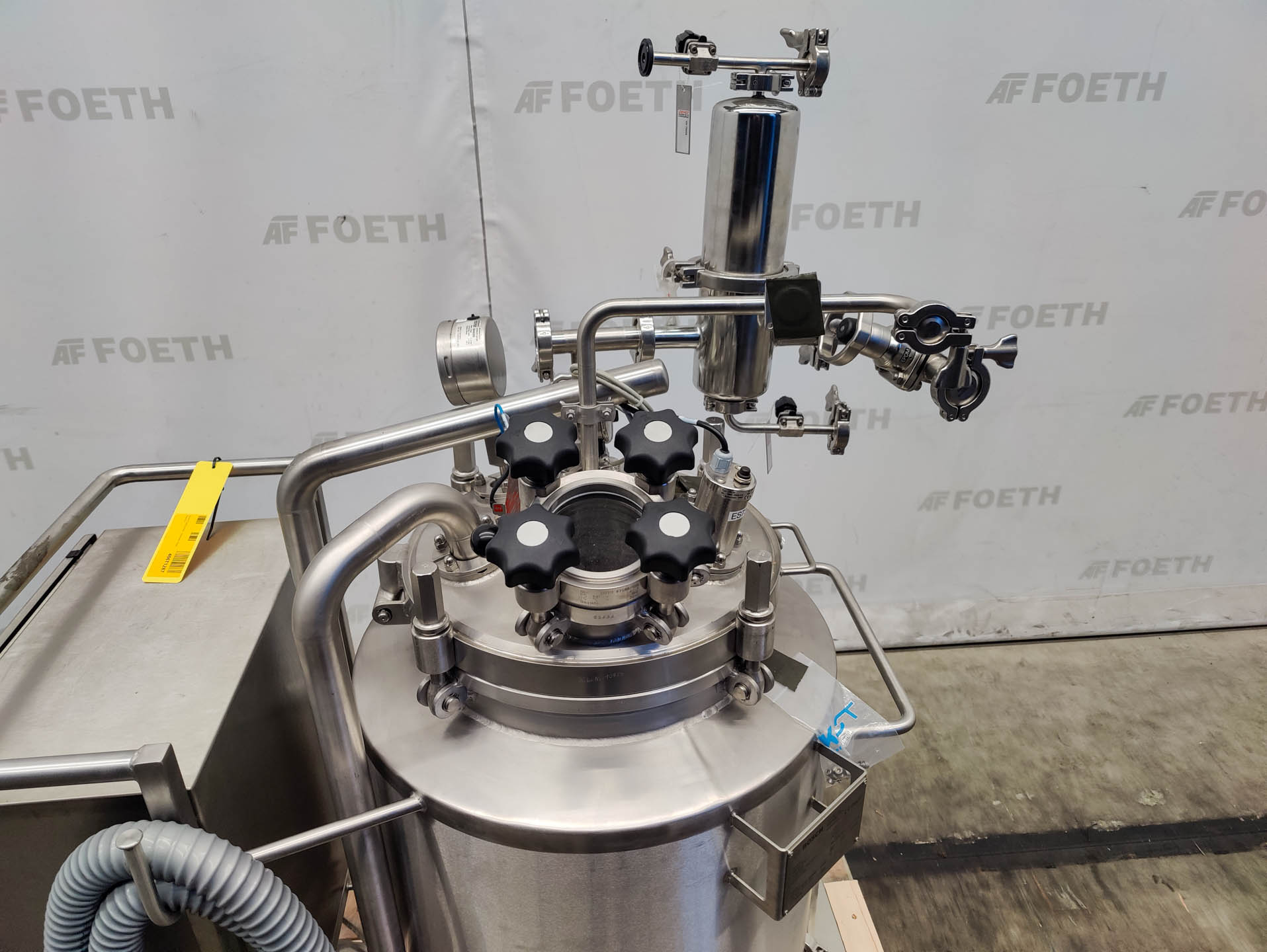 General SKULT004 MakePharmatec GmbH/ Syntegon Technology / Pepperl+Fuchs LocationBarneveld CEcheck TypeMain Fraction Tank Pressure Working pressure3 Bar Vacuum possiblecheck Working pressure jacket6 Bar Vacuum possible jacketcheck Main Features MaterialStainless steel Volume15 Ltr. Motor0.12 KW Specified Features - Stainless Steel Reactor Reactorcheck Capacity15,0 Ltr (20,5 Ltr ) Vessel sizesdia,250 x315mm Outlet3/4 With jacket(4,5 Ltr, 0,19m2) Max. temperature-10/95°C. With propellor stirrercheck Magnetic ZETA, Type BMRT 50 W EX S Dk Motor0.12 kW, 230-400 Volt, (Ex) Speed mixing shaft125-860 rpm Stainless Steel Reactors MaterialStainless steel 1.4404 (316L) Information No.12462 Year of construction2021 Mounted on legsmobile skid With switchcheck With switchgearcheck Total height+/- 1,5 m Weight385 kg ATEX compatiblecheck Extra Specifications- The ta ...