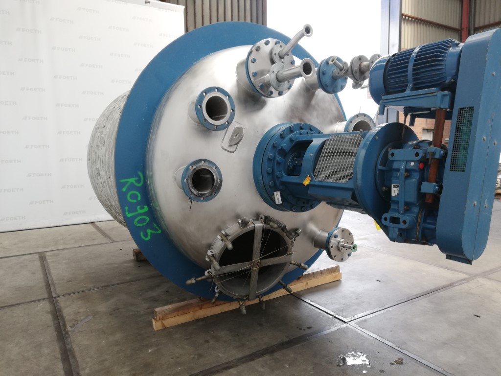 General SKUR0909 MakePaul Schwingel GmbH (DE) LocationBarneveld Type6300 ltr. Pressure Working pressure3.2 Bar Vacuum possiblecheck Working pressure jacket16 Bar Main Features MaterialStainless steel Volume6300 Ltr. Motor15 KW Specified Features - Stainless Steel Reactor MaterialStainless steel 1.4435 (316L), Stainless steel 1.4541 (321) Stainless Steel Reactors Reactorcheck Capacity8560 ltr ( nett 6300 ltr. ) Vessel sizesdia. 2000x3050mm Dished bottomcheck Dished top sidecheck ManholeDN600 Top connections5x DN150, 2x DN250 OutletDN150 Half coil jacketed(350 ltr) Max. temperature-30/200 Degr.C With paddle stirrerEkato HWL 100-D Motor15 kW, 380 Volt, (EX) Speed mixing shaft69 rpm Information No.8880-3 Year of construction1989 Floorspace2,4x2,4 M Total height4,9 M Weight5000 Kg ATEX compatiblecheckFine chemicalsOther chemicalRubberAgrochemicalsPlastic & ...
