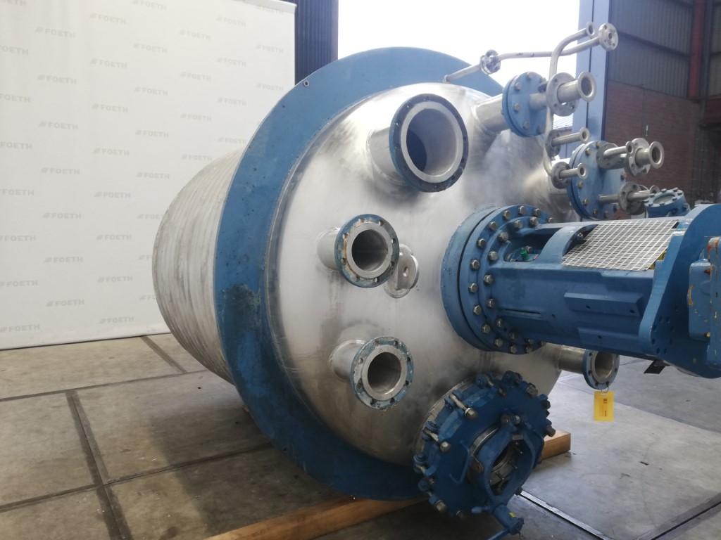 General SKU212T119 MakeEnco LocationBarneveld Pressure Working pressure2 Bar Vacuum possiblecheck Working pressure jacket6 Bar Main Features MaterialStainless steel Volume8000 Ltr. Motor5.5 KW Specified Features - Stainless Steel Reactor Reactorcheck Capacity8000 Ltr. (max. 8650 Ltr.) Vessel sizesdia. 1800x3714 mm Dished bottomcheck Manholecheck DN450 Top connectionscheckDN50, DN100 OutletDN80 (3x) Half coil jacketedcheck (280 Ltr.) Max. temperature200 °C With paddle stirrercheck Motorcheck 5,5 kW, Speed mixing shaft59 rpm Stainless Steel Reactors MaterialStainless steel 1.4571 (316Ti) Information No.3385/50.1 Year of construction1990 Floorspace2,2x2,5 m Total height4,1 m Weight2000 kgFine chemicalsOther chemicalRubberBiotechnologyAgrochemicalsPlastic & polymersCatalysts & fillersSolventsDetergent & surf.Other pharmaceuticsCosmeticsLubricants & oleoSolid ...