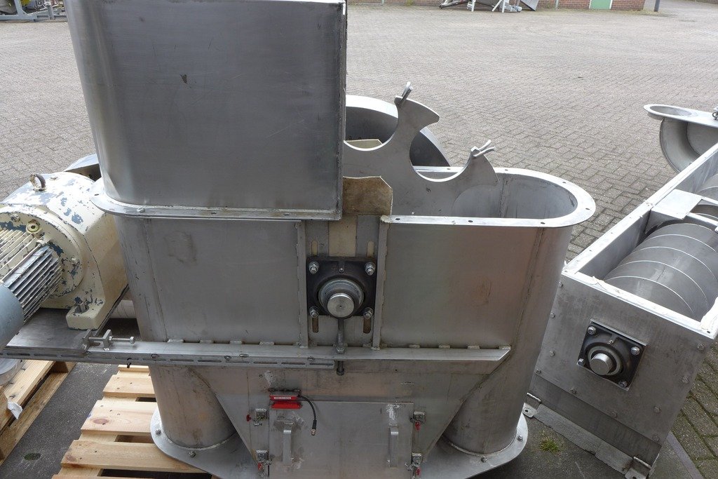General SKU234M148 Makeunknown, typeplate is missing Typefloveyor LocationBarneveld Main Features Motor3 KW Length5000 mm Inlet diameter400 mm Specified Features - Vertical screw conveyor MaterialStainless steel Vertical conveyor screwcheck Tube-modelcheck Diameterscrew 400mm Lengthscrew 3,4 M Motorscrew 4 KW 380 Volt, floveyor 3 KW 380 Volt Screw speed28 rpm Conveying height5,0 M Information With switchcheck Floorspace+/- 3,5x1,5x1,0 M Total height+/- 6,0 M Weight1400 KGTea, herbs & coffeeFine chemicalsStarchOther chemicalRubberBiotechnologyAgrochemicalsSpicesPlastic & polymersCatalysts & fillersFeed additivesPaper & otherSolventsDetergent & surf.Other pharmaceuticsVertical screw conveyorsCosmeticsOrganicsE-waste & metalFood additivesSugarLubricants & oleoDairyAnimal feedOther feedConfectionerySolid pharmaceuticsBeveragesDyes & pigmentsBiopharmaceuticalAPIPlastic ...