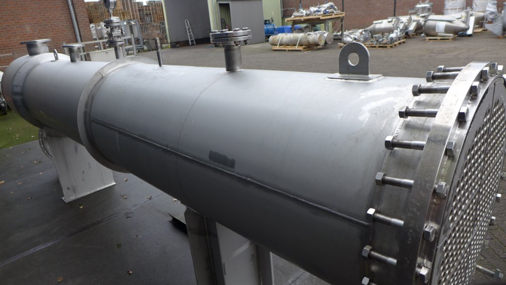 General SKU309N518 MakeEbner Anlagen und Aparate Germany No.062404700 Year of construction2007 Mounted on legscheck Material Shell materialStainless steel 1.4462 (318LN) Cover materialStainless steel 1.4462 (318LN) Tube materialStainless steel 1.4462 (318LN) Pressure Vacuum possiblecheck Working pressure shell0.5 Bar Vacuum possible shellcheck Working pressure tubes2 Bar Tubular vacuum possiblecheck Main Features Shell (Material)Stainless steel Tube (Material)Stainless steel Surface120 m2 Specified Features - Shell and tube heat exchanger Heat exchangercheck Horizontalcheck Heating surface120 m2 Tube capacity820 Ltr Number of tubes:334 Tube diameter25,0mm Tube length5000mm Wall thickness tubes1,0mm Max. temperature10-100 gr.C, Shell capacity1600 Ltr Shell diameter750mm Shell length5000mm Wall thickness shell4,0mm Max. temperature10-120 gr.C Shell conne ...