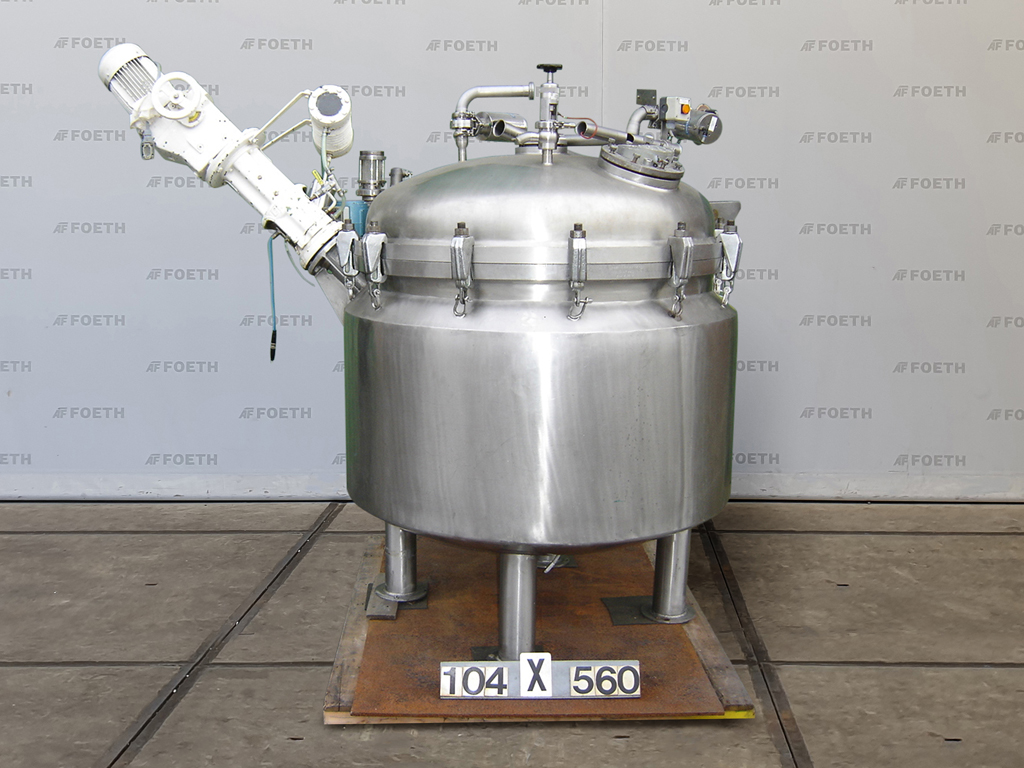 General SKU104X560 MakeAmbau Kiel No.2986/11/11 Year of construction1970 Mounted on legscheck Pressure Working pressure3.5 Bar Vacuum possiblecheck Working pressure jacket3.5 Bar Vacuum possible jacketcheck Main Features MaterialStainless steel Volume925 Ltr. Motor2.2 KW Specified Features - Stainless Steel Reactor Reactor(1x) Capacity925 Ltr Vessel sizesdia. 1100x800mm Dished bottomcheck Dished top sidecheck Outletdia. 60mm With jacket(100 Ltr) Max. temperature150 Degr. C. With propellor stirrercheck Motor2,2 KW, 220/380 Volt Speed mixing shaft± 240-1200 Rpm Stainless Steel Reactors MaterialStainless steel 1.4541 (321) Information LocationBarneveld Floorspace2,2x1,4 M Total height2,0 M Weight1100 KGFine chemicalsOther chemicalRubberAgrochemicalsPlastic & polymersCatalysts & fillersSolventsDiscountDetergent & surf.Other pharmaceuticsCosmeticsOrganicsLub ...
