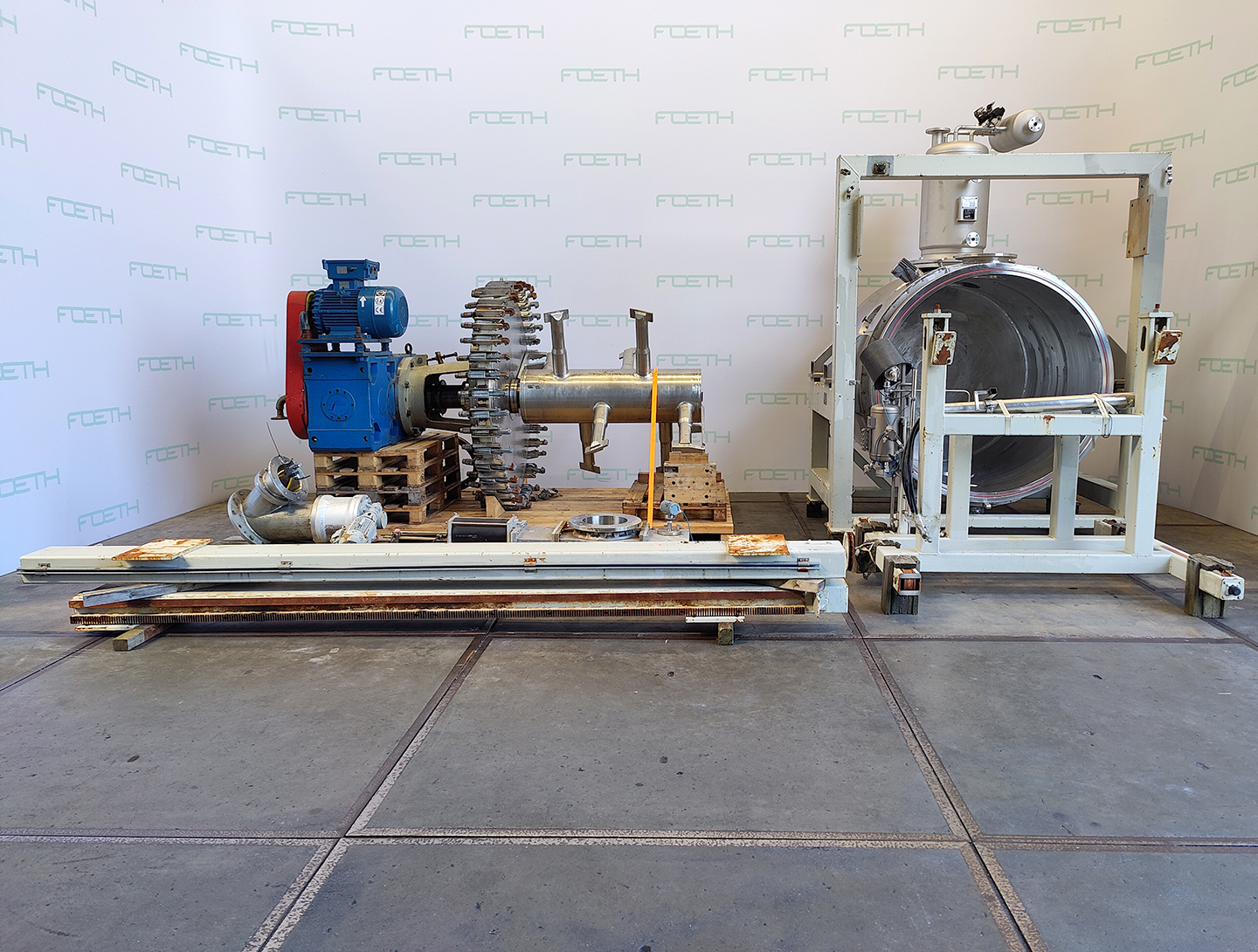 General SKU290N365 MakeKrauss Maffei Verfahrenstechnik Gbmh LocationBarneveld TypeReactotherm Pressure Working pressure10 Bar Working pressure jacket16 Bar Main Features MaterialStainless steel Volume80 Ltr. Motor15 KW Specified Features - Paddle dryer Paddle dryercheck Continuouscheck Capacity+/- 80 Ltr Trough sizesdia.300mm x1400mm Inlet(2x) dia.200mm, (1x) dia.150mm Outletdia.200mm With jacketcheck Shaft can be heatedcheck Max. temperature350 gr.C Motor2,5-15 KW, 88-460 Volt, 10-60 Hz MaterialStainless steel 1.4404 (316L) Information No.08613/1 Year of construction1994 Mounted on framecheck Floorspace3,4x1,6 M Total height1,4 M Weight1800 KGFine chemicalsStarchOther chemicalBiotechnologyAgrochemicalsCatalysts & fillersFeed additivesOther pharmaceuticsCosmeticsSugarAnimal feedOther feedConfectionerySolid pharmaceuticsDyes & pigmentsBiopharmaceuticalAPIMin ...