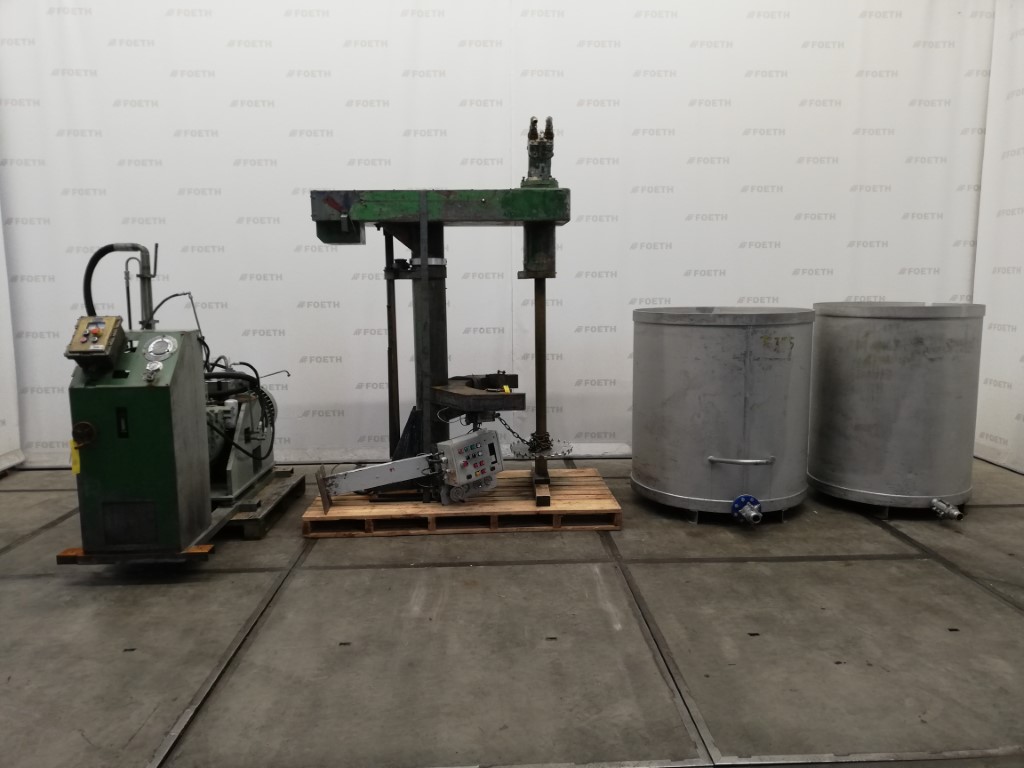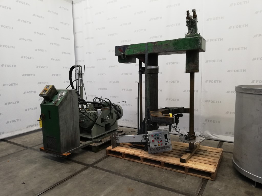General SKU288S378 Makeunknown, manufacturer plate is missing LocationBarneveld Main Features MaterialMild steel Volume1500 Ltr. Motor37 KW Specified Features - Dissolver Dissolvercheck Shaft length1280mm Disc diameter500mm Hydraulic drivecheck With hydraulic unitcheck Motor37 kW 380/660 volt With pans(2x) stainless steel Capacity1500 ltr Pan sizesdia. 1295x1300mm (1x), dia. 1135x1400mm (1x) Outletdia. 45mm With hydraulic liftingcheck MaterialMild steel Information With switch(as is) Floorspace1,9x1,3 M Total height2,8 M Weight2400 KgOils & fatCatalysts & fillersSolventsPaints & coatingsDetergent & surf.Other pharmaceuticsOintmentsLubricants & oleoFine chemicalsOther chemicalOther feedDyes & pigmentsMinerals & inorganicDissolvers-Industries > Food & Feed > Oils & fatIndustries > Chemical > Catalysts & fillersIndustries > Chemical > SolventsIndustries > Chemical ...