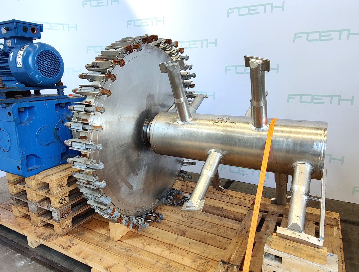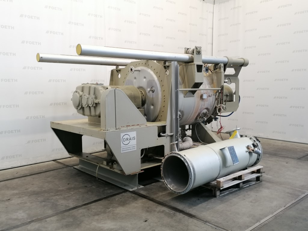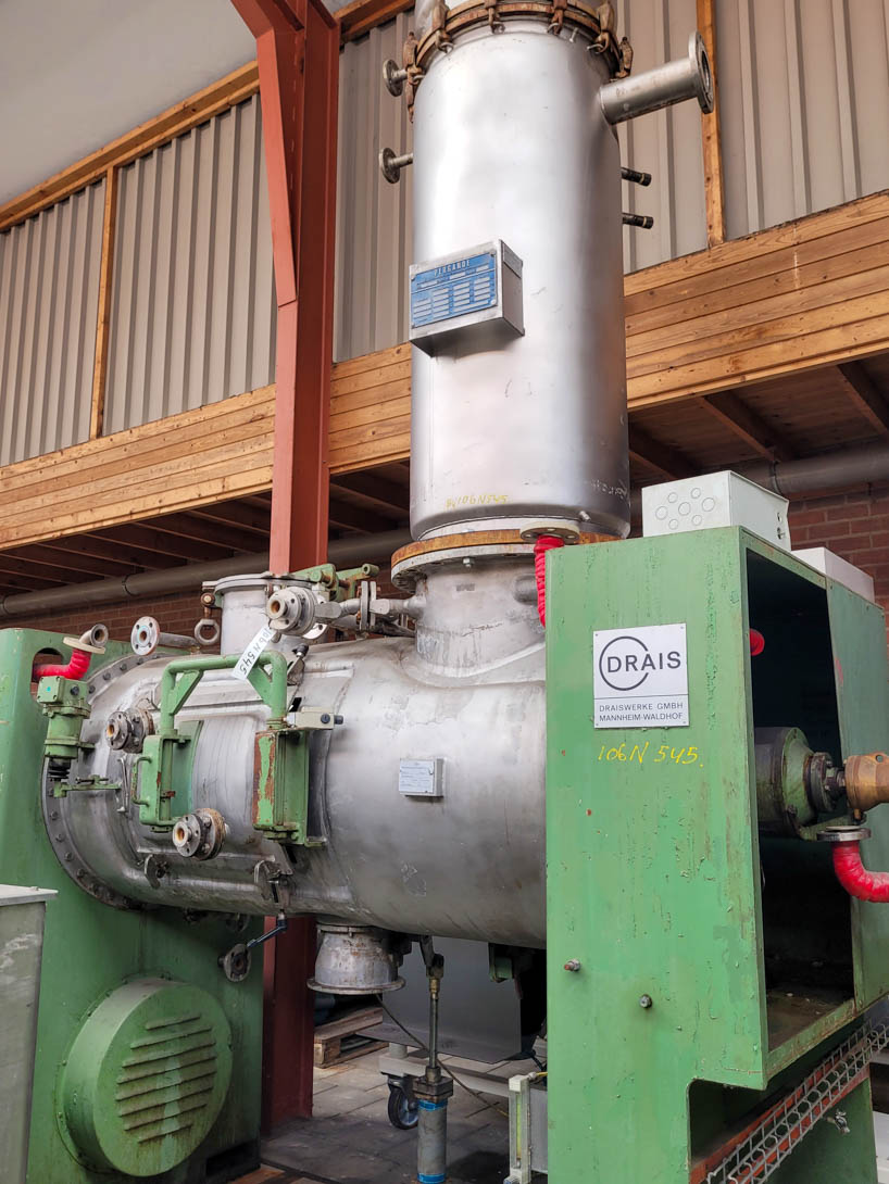 General SKU106N545 MakeDrais TypeTR 1000 No.49693 (Vessel 2602) Year of construction1979 Mounted on framecheck Pressure Working pressure0 Bar Vacuum possiblecheck Working pressure jacket5 Bar Technical specs Max. temperature200 °C Main Features MaterialStainless steel Volume1000 Ltr. Motor35 KW Specified Features - Paddle dryer Paddle dryercheck Capacity1000 l Trough sizesDia. 800 x 2000mm InletDia. 360mm Manholecheck OutletDia. 160mm, Inspection valve 710x450mm With jacketcheck 100 L Shaft can be heatedcheck Max. temperature200°C With adjustable packing glandscheck Motor35 kW, (380 V (Ex)) MaterialStainless steel 1.4552, Stainless steel 1.4306 (304L) Information LocationBarneveld Floorspace4,0 x 1,3 m Total height4,5 m Weight± 5500 kg ATEX compatiblecheckCatalysts & fillersFeed additivesDiscountPowdered foodsGeneric medicinesOther pharmaceuticsOint ...