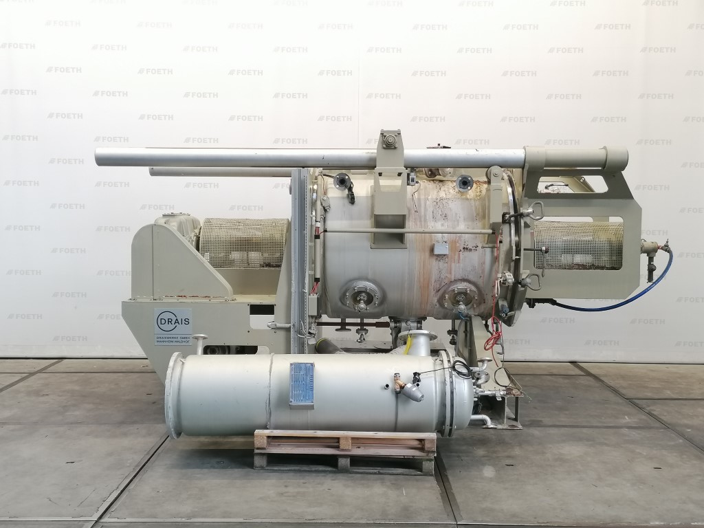 General SKU041K133 MakeDrais TypeTR10 No.49694 Year of construction1979 Mounted on framecheck Mounted on wheels Pressure Working pressure4 Bar Vacuum possiblecheck Working pressure jacket5 Bar Technical specs Max. temperature200 °C Main Features MaterialStainless steel Volume12 Ltr. Motor2.2 KW Specified Features - Paddle dryer Paddle dryercheck Capacity12 l Trough sizesø 250 x 250 mm Inletø 100 mm Outletø 50 mm With jacketcheck 3 l Max. temperature200°C. Motor2,2 kW, (380 V. 1470 rpm) With variable speed drivecheck Speed mixing shaft80-500 rpm MaterialStainless steel 1.4541 (321), Stainless steel 1.4571 (316Ti) Information LocationBarneveld With switchcheck Floorspace1,8 x 0,8 m Total height1,4 m Weight475 kgCatalysts & fillersFeed additivesDiscountPowdered foodsGeneric medicinesOther pharmaceuticsOintmentsCosmeticsSugarFine chemicalsStarchAnimal ...