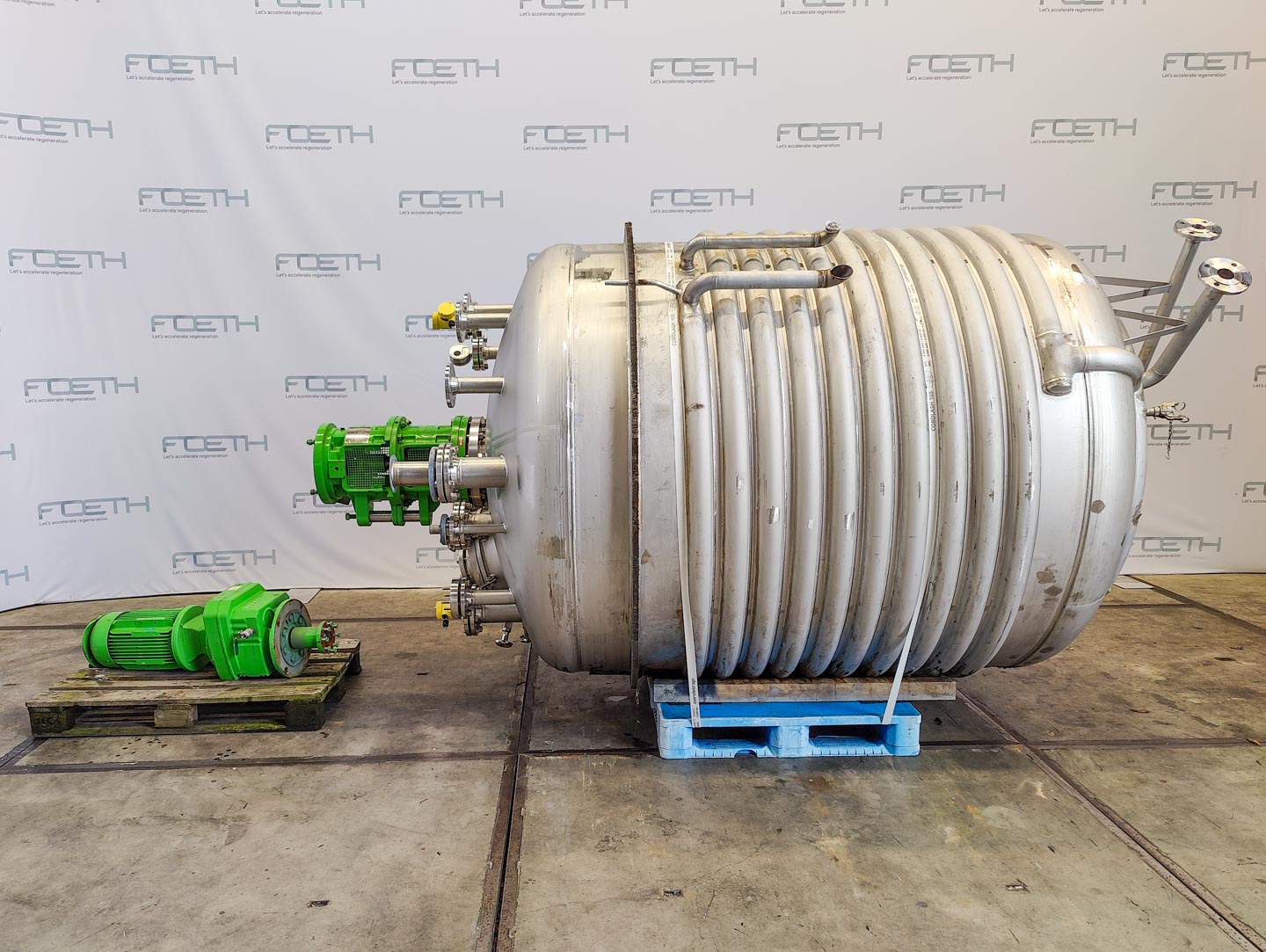 General SKU356S849 MakeAlois Binderberger Albi (AT) LocationBarneveld Type6300 ltr. Pressure Working pressure3.2 Bar Vacuum possiblecheck Working pressure jacket10 Bar Main Features MaterialStainless steel Volume6300 Ltr. Motor7 KW Specified Features - Stainless Steel Reactor MaterialStainless steel 1.4539 (904L) Stainless Steel Reactors Reactorcheck Capacity5800 Ltr (total 6300) Vessel sizesdia.1800 x2000mm Dished bottomcheck Dished top sidecheck ManholeDN450 Top connectionsDN25 (4x), DN50 (2x), DN80 (3x) OutletDN50 Half coil jacketed(120 ltr) Max. temperature-20/130 Degr.C. With paddle stirrerSpeiss Semix 060 Motorcheck Speed mixing shaft146 rpm Information No.1360 Year of construction1996 Floorspace2,5x2,5 m Total height4,7 m Weight2900 kg Extra Specificationswith different spare parts (as it is) and 2x Hastelloy C22 Turbodisc VSHF 100/360 dgr tankw ...