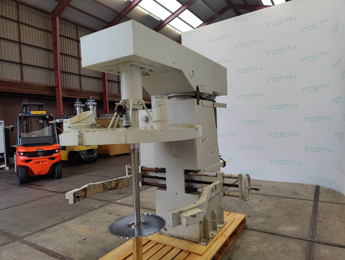 General SKU245W307 MakeMolteni LocationBarneveld TypeOHN RP SV Main Features MaterialStainless steel Volume1000 Ltr. Motor55 KW Specified Features - Dissolver Dissolvercheck Shaft length830 mm Disc diameter400 mm Between shaft and frame800 mm With covercheck Motor55 kW, 380 volt, 1470 rpm Speed mixing shaft18 rpm ? With panscheck Capacity1000 ltr Pan sizes1200x1050 mm Outlet80 mm With hydraulic liftingcheck MaterialStainless steel Information No.18/3 Year of construction1991 With switchgearcheck(as is) Floorspace1,20x2,00 m Total height2,90 m Weight5000 kg ATEX compatiblecheck Extra Specificationsthis machine was originally designed to work under vacuum. however, the machine was never used in this way. so the machine is sold as an atmospheric working machine.Oils & fatCatalysts & fillersSolventsPaints & coatingsDetergent & surf.Other pharmaceuticsOintments ...