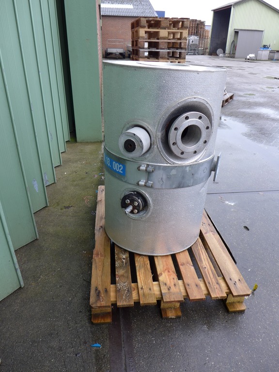 General SKU039E129 MakeRichard Stihler No.5057 Year of construction1963 Mounted on legscheck Pressure Working pressure2 Bar Vacuum possiblecheck Number of vertical pressure tanks1 Main Features MaterialStainless steel Volume4480 Ltr. Pressure2 Bar Vacuumcheck Specified Features - Pressure vessel MaterialStainless steel 1.4571 (316Ti) Capacity4480 Ltr Vessel sizesdia. 1800x1200mm Dished topcheck Dished bottomcheck Manholedia. 500mm Top connections(6x) Outletdia. 100mm Max. temperature50 Degr. C. Information LocationBarneveld Floorspace1,8x1,8 M Total height2,8 MPressure vesselsDiscountRichard StihlerTanks > Pressure vesselsDiscountBrand > Richard Stihler What you can expect from Foeth: -- Machine is in working condition -- At a reduced price compared to new -- Ready for shipping to any destination worldwide -- You are welcome to inspect the machine in Barnevel ...