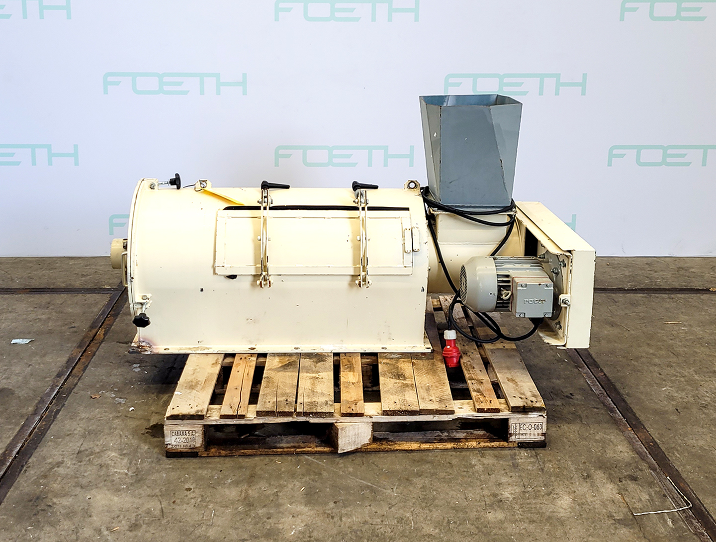 General SKU066A334 MakeHalvor Forberg A/S Larvik Norway TypeFT-200 No.S12-94 Year of construction1994 Mounted on framecheck Main Features MaterialStainless steel Volume200 Ltr. Motor5.5 KW Specified Features - Paddle mixer Paddle mixercheck Double shaftcheck Useful capacity200 Ltr. Trough sizes1000x850x950mm ManholecheckInspection hatch 785x410mm OutletDia. 220 mm Motor5,5 KW, 380/660 Volt MaterialStainless steel 1.4301 (304) Information LocationBarneveld Floorspace 1,7x1,6 m Total heightmixer without filter 2,5m Weight2250kg Extra Specifications- Equipped with Forbergs PMS Pin Mill System = 2 high speed rotating shafts with welded pins - Heat exchanger and fan are missing - With nozzles for liquid injection - :With envelope filters Catalysts & fillersFeed additivesDiscountPowdered foodsGeneric medicinesOther pharmaceuticsOintmentsCosmeticsSugarFine chemicalsSt ...