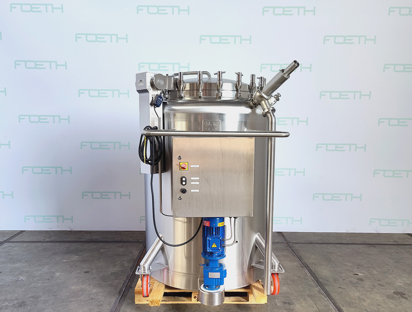General SKU227W228 LocationBarneveld CEcheck MakeGPI b.v. TypeV-015 Pressure Working pressure2 Bar Vacuum possiblecheck Main Features MaterialStainless steel Volume1800 Ltr. Motor1.1 KW Specified Features - Stirring vessel Closed stirring vesselcheck Capacity1800 Ltr. Vessel sizesDia. 1250x1500 mm Slope bottomcheck Dished top sidecheck With covercheck with 2 CIP nozzles OutletDia. 25 mm Max. temperature150°C With paddle stirrercheck Motor1,1 kW, 1400 rpm (EX) Speed mixing shaft35rpm MaterialStainless steel 1.4404 (316L) Information No.22-175-1 Year of construction2002 Mounted on legscheck with wheels With switchgearcheck Floorspace1,9x1,4 m Total height2,0 m ATEX compatiblecheck Extra Specificationsadjustable stirring speed by means of a frequency converter. Oils & fatCatalysts & fillersStirring vesselsFeed additivesSolventsConsumer wastePaints & coati ...