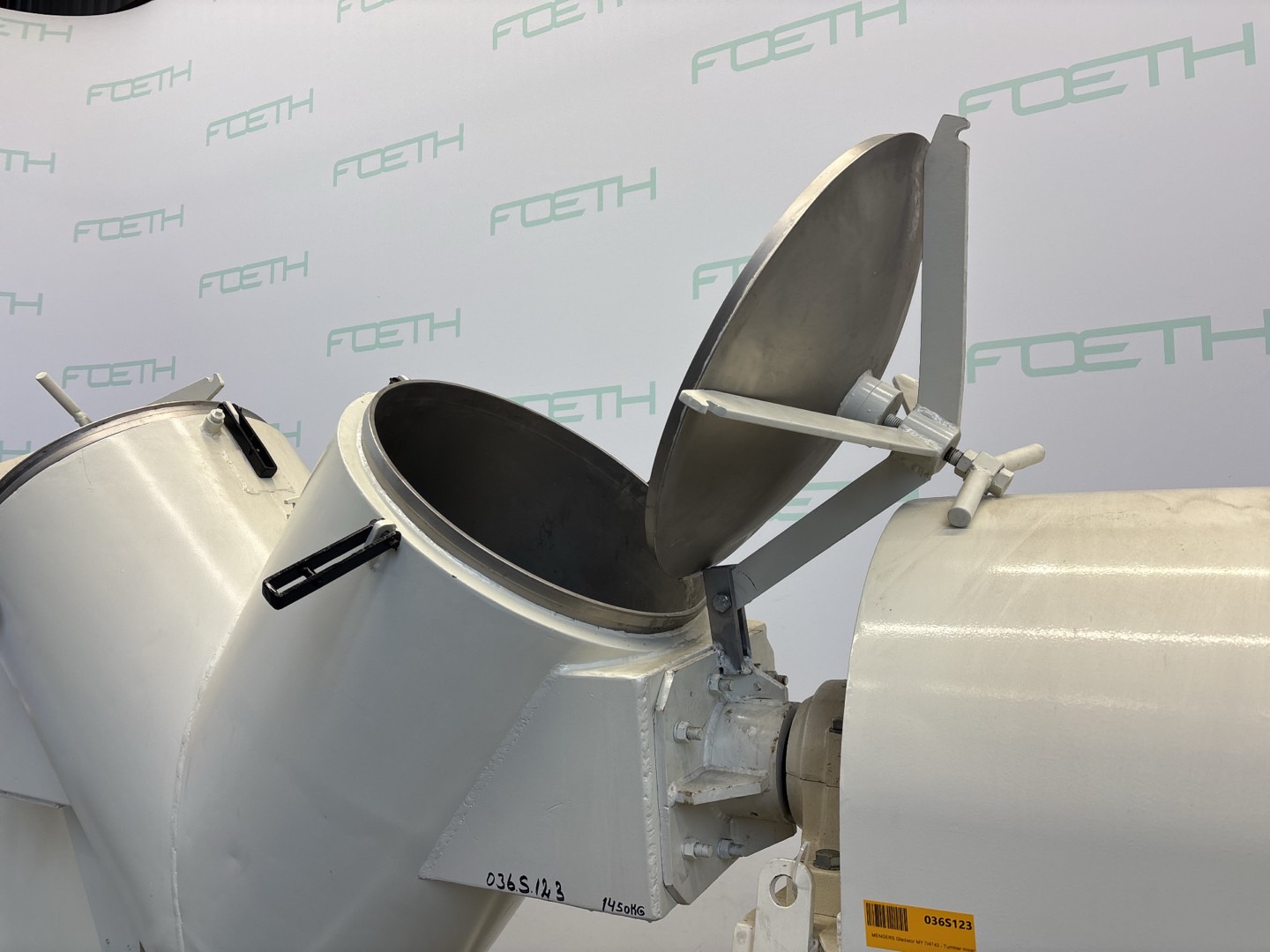 General SKU036S123 MakeGladiator TypeMY 7/4743 No.689 LocationBarneveld Material Jacket materialMild steel Main Features MaterialStainless steel Volume300 Ltr. Motor9.5 KW Specified Features - Tumbler mixer V-type tumbler mixercheck Capacity300 l. (total capacity) Diameterø 550 mm Length/Depth900/450 mm Inlet2x ø 550 mm Outletø 200mm With jacketcheck With motor5.5 kW 400 V 960 rpm With variable speed drivecheck Speed mixer6 rpm With lump breakercheck 1000 rpm With motor4 kW 400V 960 rpm MaterialStainless steel 1.4401 (316) Information Mounted on mild steel framecheck Floorspace3,0 x1,4 m Total height2,4 m Weight1600 kg Extra SpecificationsWITH INTENSIFIER BAR - OVERHAULED - Tumbler mixersDiscountGladiatorMixers > Tumbler mixersDiscountBrand > Gladiator What you can expect from Foeth: -- Machine is in working condition -- At a reduced price compared to n ...