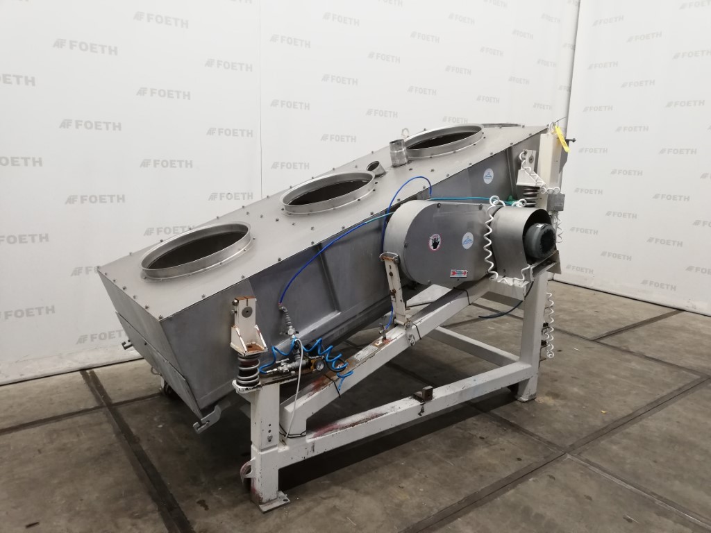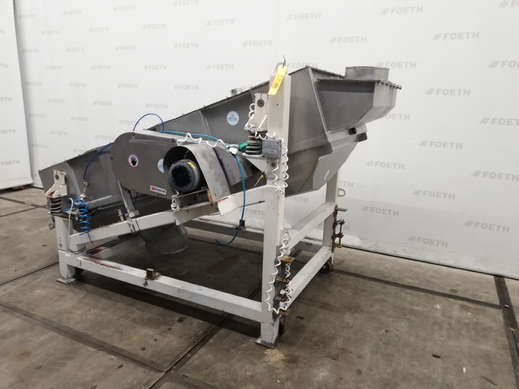 General SKU340S630 LocationBarneveld MakeSweco Separator TypeRM3-1A-S-BR1 No.54460 Main Features MaterialStainless steel Surface2.75 m2 Size length2500 mm Sizes width1100 mm Specified Features - Vibro sieve Vibro sievecheck Sieve surface2,75 m2 Number of sieve decks:1 Sieve sizes1100x2500mm Inletdia. 300mm Outletdia. 400mm (1x), dia. 150mm (1x) Motor4 kW 240/415 Volt Sieve perforation3x3mm Information Year of constructionunknown Mounted on mild steel framecheck Floor space3,0x1,8 M Total height1,9M Weight1450 KgStarchOther chemicalRubberPlastic & polymersFeed additivesPaper & otherOther pharmaceuticsOrganicsE-waste & metalSugarAnimal feedOther feedSolid pharmaceuticsPlastic & rubberMinerals & inorganicGeneric medicinesPowdered foodsConsumer wasteVibro sievesSwecoIndustries > Food & Feed > StarchIndustries > Chemical > Other chemicalIndustries > Chemical > Rubber ...
