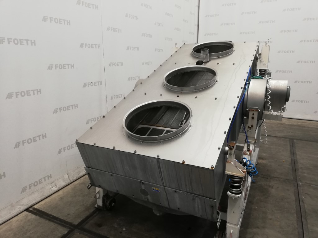 General SKU005U012 MakeGough & Co. Stoke on Trent TypeVibrecon Separator No.26820 Year of construction1991 LocationBarneveld Main Features MaterialStainless steel Surface1.3 m2 Sizes diameter1300 mm Specified Features - Vibro sieve Vibro sievecheck Sieve surface1,3 m2 Number of sieve decks:2 Sieve sizesdia. 1300 mm Outlet3x dia. 200mm Motor3 kW (400 V, 1400 rpm) Sieve perforation5 mm and 1 mm MaterialStainless steel Information Floor space1,7 x 1,7 m Total height1,5 m Weight900 kgStarchOther chemicalRubberPlastic & polymersFeed additivesPaper & otherDiscountOther pharmaceuticsOrganicsE-waste & metalSugarAnimal feedOther feedSolid pharmaceuticsPlastic & rubberMinerals & inorganicGeneric medicinesPowdered foodsConsumer wasteVibro sievesGough & CoIndustries > Food & Feed > StarchIndustries > Chemical > Other chemicalIndustries > Chemical > RubberIndustries > Chemical ...