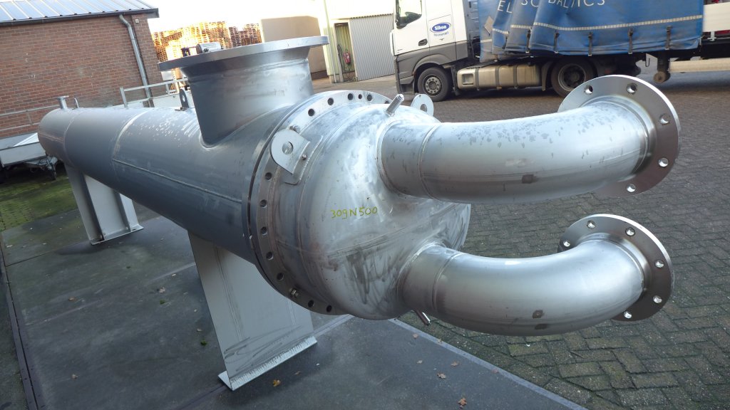 General SKU309N500 MakeFalk gmbh & Co. KG No.3304 Year of construction2007 Mounted on legscheck Material Shell materialStainless steel 1.4571 (316Ti) Cover materialStainless steel 1.4571 (316Ti) Tube materialStainless steel 1.4571 (316Ti) Pressure Working pressure shell1 Bar Working pressure tubes4 Bar Main Features Shell (Material)Stainless steel Tube (Material)Stainless steel Surface150.5 m2 Specified Features - Shell and tube heat exchanger Heat exchangercheck Horizontalcheck Notified bodyAD2000 Heating surface150,5 m2 Tube capacity830 Ltr U-typecheck Number of tubes:157 Tube diameter25mm Tube length(2x)5900mm Wall thickness tubes2,0mm Max. temperature100 degr.C Shell capacity1530 Ltr Shell diameterdia.711mm Shell length6370mm Wall thickness shell5mm Max. temperature100 gr.C. Shell connectionsdn500, dn80 Cover connections(2x)dn200 Information Loca ...