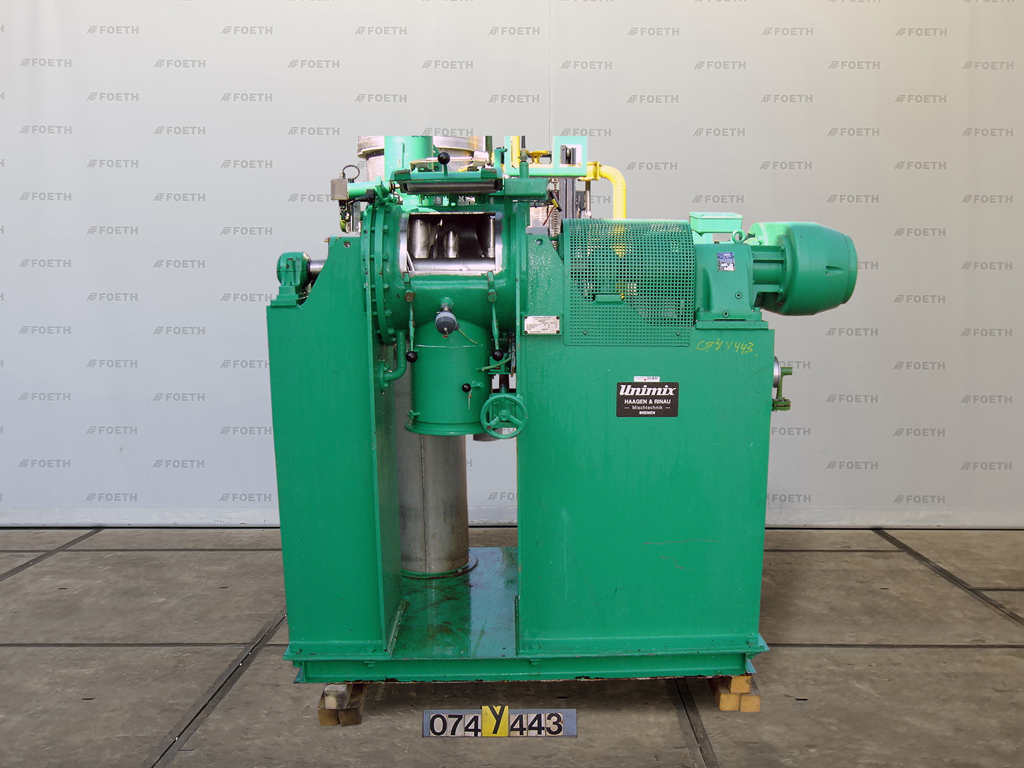 General SKU084T495 MakeCollette TypeGRAL-150 Mach.No.77MG15005 Year of construction1978 Main Features MaterialStainless steel Volume150 Ltr. Motor15 KW Specified Features - Universal mixer Gral-granulator(1x) Capacity150 l Vessel sizesø 690 x 450mm, Vessel can be lifted hydr. With covercheck Pneumatic operated outletø 200mm With motor7,5/11,0 kW,(380 V (Ex)) Rotor speed150/225 rpm With lump breakercheck With motor3,0/4,0 kW, (380 V (Ex)) Rotor speed1500/3000 rpm With timercheck MaterialStainless steel 1.4552, Stainless steel 1.4306 (304L) Information LocationBarneveld With switchgearcheck Floorspace2,5 x 1,0 m Total height2,3 m ATEX compatiblecheck Extra Specifications- Air purged seals on mixer/chopper shafts Technical specs Extra informationVessel can be lifted hydr.Universal mixersDiscountColletteMixers > Universal mixersDiscountBrand > Collette What ...