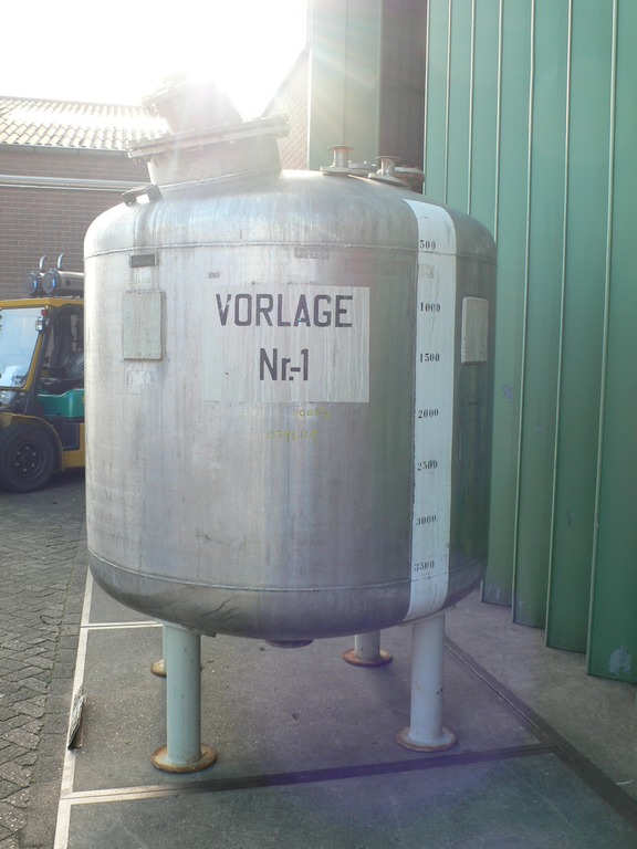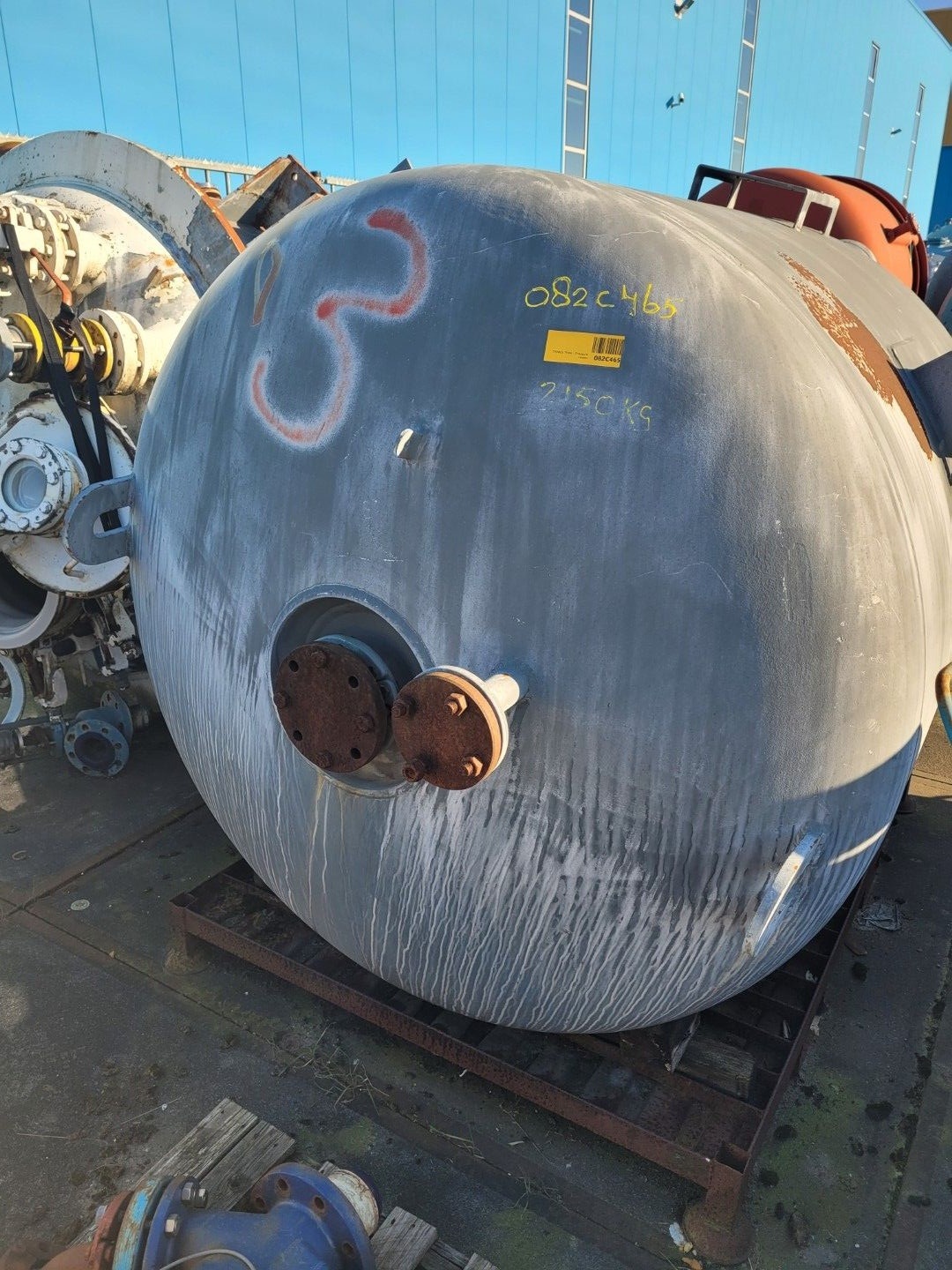General SKU039E129 MakeRichard Stihler No.5057 Year of construction1963 Mounted on legscheck Pressure Working pressure2 Bar Vacuum possiblecheck Number of vertical pressure tanks1 Main Features MaterialStainless steel Volume4480 Ltr. Pressure2 Bar Vacuumcheck Specified Features - Pressure vessel MaterialStainless steel 1.4571 (316Ti) Capacity4480 Ltr Vessel sizesdia. 1800x1200mm Dished topcheck Dished bottomcheck Manholedia. 500mm Top connections(6x) Outletdia. 100mm Max. temperature50 Degr. C. Information LocationBarneveld Floorspace1,8x1,8 M Total height2,8 MPressure vesselsDiscountRichard StihlerTanks > Pressure vesselsDiscountBrand > Richard Stihler What you can expect from Foeth: -- Machine is in working condition -- At a reduced price compared to new -- Ready for shipping to any destination worldwide -- You are welcome to inspect the machine in Barnevel ...