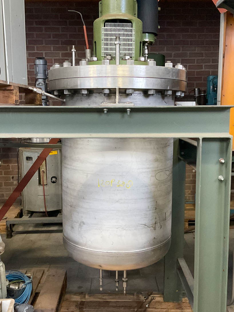 General SKU120P508 MakeHoefnagel+Meijn BV No.87358-02 Year of construction1987 LocationBarneveld Pressure Working pressure12 Bar Main Features MaterialStainless steel Volume265 Ltr. Motor5 KW Specified Features - Stainless Steel Reactor Reactorcheck Capacity265 Ltr Vessel sizesdia. 650x900mm Dished bottomcheck With jacketcheck Max. temperature200°C Motor5 KW, 220 Volt (Ex), With variable sp. dr. Speed mixing shaft188 to 941 rpm Stainless Steel Reactors MaterialStainless steel 1.4404 (316L) Information ATEX compatiblecheck Extra Specifications- Stirrer make Ekato type HWLO 40L Fine chemicalsOther chemicalRubberAgrochemicalsPlastic & polymersCatalysts & fillersSolventsDetergent & surf.Other pharmaceuticsCosmeticsOrganicsLubricants & oleoSolid pharmaceuticsDyes & pigmentsAPIMinerals & inorganicOintmentsGeneric medicinesPaints & coatingsStainless Steel ReactorsHoef ...