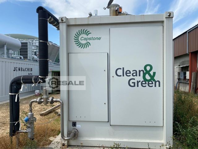 사용 CAPSTON C400S 마이크로 터빈. 등급: 400kW 전기 효율 LHV : 33 % 열병합 전력 효율: 최대 90% 전압: 400-480VAC 주파수: 50/60Hz 전기 서비스: 3상, 4선식 와이 2023년 10월 말에 폐쇄되었으며, 그 중 하나는 2023년 1월부터 폐쇄되었습니다. 2020년 11월 말에 가동을 시작했습니다. 판매에는 터빈 3개(2개 설치), 열 회수 장치(550kW), 저압 및 고압 응축수 제거용 교환기, 컨테이너에 있는 Mattei 가스 압축기(6.5bar), 가스 냉각기, 가스 송풍기 및 터빈 입구 가스 필터.