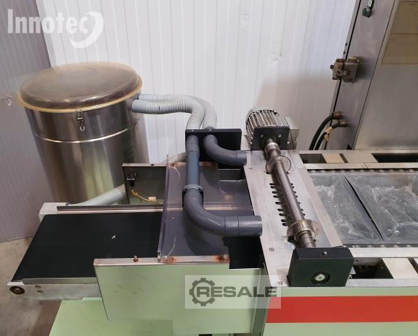 Przecinarka próżniowa Kramer+Perkoz VSM 200 Producent Niemcy Rok produkcji Remontowane Dane techniczne wymiary gabarytowe 2800x2300x1700 mm; miska 200 ltr; 3 prędkości noży 1000/1500/3000 obr./min; 2 prędkości bębna; 2 prędkości mieszania; ładowarka hydrauliczna; rozładowarka hydrauliczna; 6 noży; zasilanie 400 V, 50 Hz; moc: silnik główny 26/48/85 kW, silnik bębnowy 2,6/5,1 kW, silnik mieszający 3,2/4,1 kW; silnik rozładowania 1,1 kW, układ hydrauliczny 2,2 kW, pompa próżniowa Busch 250 m3, 5,5 kW.