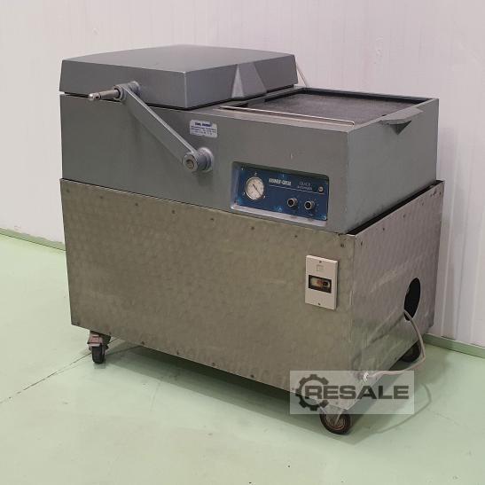 Likwidacja zgrzewarki próżniowej z podwójnym kapturem od producenta KRAMER GREBE, model QUICK AUTOMATIC. Jego stan to sprzęt używany, całkowicie zmieniony w całości (reedycja) gwarantowany Konfiguracja dwóch komór próżniowych pozwala na alternatywne funkcje dla jednego operatora. Łatwa konserwacja i czyszczenie Znajduje zastosowanie w zakładach produkcyjnych oraz przy produktach takich jak: świeże mięso, wędliny, szynki, ryby, produkty rolne, dania gotowe, części elektroniczne, części metalowe itp. Wymiary zewnętrzne maszyny: 1100 mm x 800 mm x 1100 mm wysokości Wymiary komory próżniowej: 470 mm x 430 mm x 150 mm wysokości Belka zgrzewająca: 1 na komorę, 430 mm x 2 szt. Pompa próżniowa Busch 63m3/h Podłączenie elektryczne: 380 V (trójfazowe) 3 fazy, 50 Hz, 16 A. Maszyna próżniowa, podwójna komora próżniowa, próżnia dwukomorowa, maszyny p ...