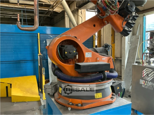 Kuka KR150L130 Series2000 Construído em 2002 Carga útil 130kg Peso 1245kg Gama 2900mm Linha de ligação 7m/15m Controlo KRC2 Construído em 2002 Peso 185kg Software 4.1.7 SP08 Aprox. 4173 horas de funcionamento Programador portátil KCP2 ..