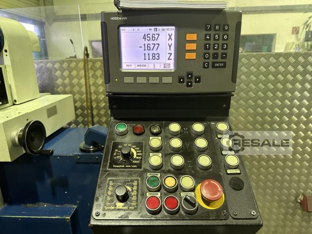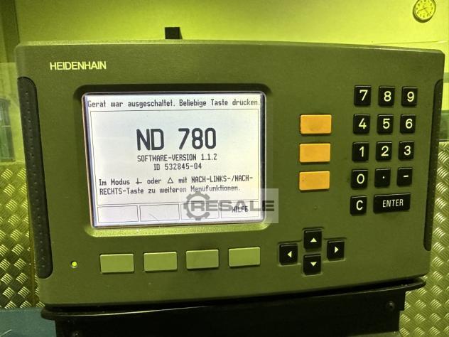 Kunzmann Uniwersalna frezarka i wiertarka WUF5/3 z Heidenhain ND 780 Wybudowany w 1989 roku w dobrym stanie. Dane techniczne WUF5/3: Wskaźnik położenia Heidenhain ND 780 Wskaźnik położenia ND 780 nadaje się szczególnie do stosowania we frezarkach, wiertarkach i tokarkach z maksymalnie trzema osiami. Stół routera: Powierzchnia mocowania 850x350 mm Rowki mocujące 5 Szerokość rowka 14H7 mm Rozstaw rowków 63 mm Obszar roboczy: wzdłużny (oś X) 490 mm Poprzeczny (oś Y) 310 mm Pionowo (oś Z) 400 mm Max. odległości: Górna część stołu do Poziome centrum wrzeciona 40 – 420 mm Górna część stołu do Dolna krawędź głowicy pionowej 350 mm Wrzeciono frezarskie: Uchwyt narzędziowy SK40 Prędkości poziome 40 – 2500 min-1 Prędkości pionowe 40 – 2500 min-1 Skok pinoli 60 mm Głowica pionowa obracana w obie strony + - 90 ...