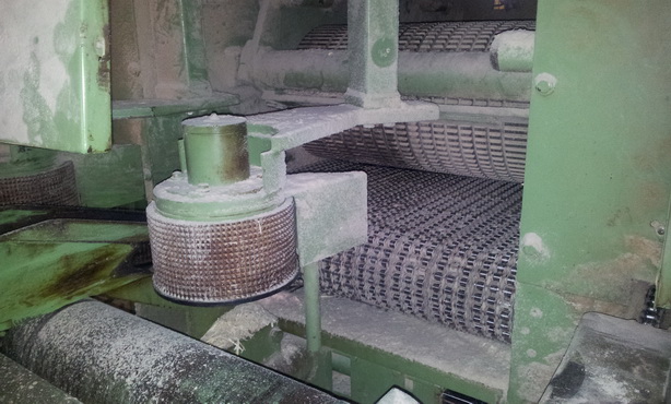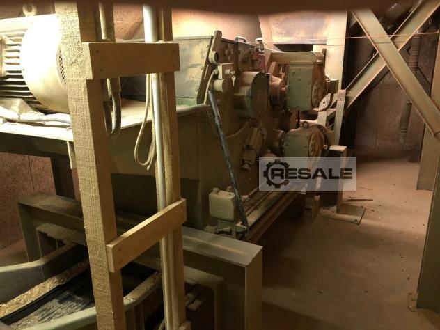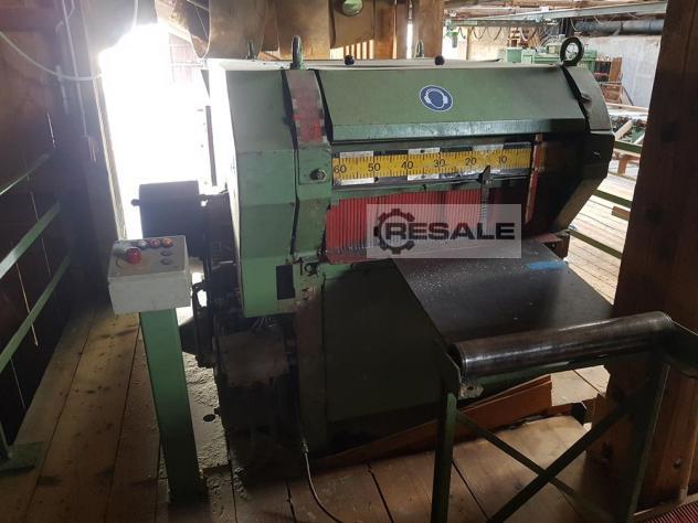 Esterer DKV 1 可移动法兰 ! 固定安装... 进料液压 液压和电动 滚筒升降:液压 功率:55千瓦 建造年份:约 1982 年 通道:750mm = 宽度, 160mm = 高度 2 x 定向激光 ,包括约 15 Besaeumer 圆形起泡器 * 带 Spreissel 分离器 * 螺旋滚轮齿轮;
