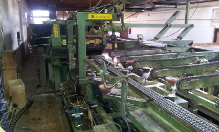 出售的是下面列出的完整框架锯木厂。 (也可以单次销售,请提前注册) 该系统每年可切割多达 60,000 立方米的实心圆木。 原木长度为 4 米,目前每年的采伐量约为 30,000 立方米,采用一班制作业。 该设施仍在运营,可以预约参观。 机器列表: 01. 原木馈送 4 股 SPRINGER 带分离器 带滚筒输送机 带原木车工 带插件 02. 夹紧滑架遥控ESTERER 型号: FHZ SV 建成于 1990 轨道宽度: 110 厘米 带辅助货车 带客舱 03. 框架锯 ESTERER 类型: HDS 建成于 1973 600冲程 最大通道 71 cm 带劈裂楔块 带驱动电机 132 kW 带前齿轮 带液压锯夹 带锯片 带连接 04. 框架滚筒输送机 Mayrhofer 带升降器/拉拔器 Li+Re 带支撑滚轮 05. 输送带宽幅用于侧货(纱架滚筒输送机后面) 带拉& ...