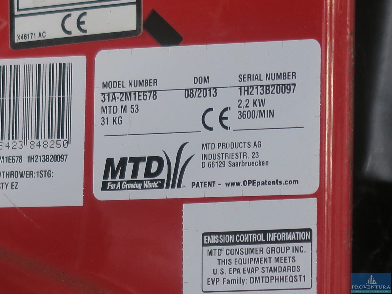 Kar üfleyici MTD M 53, yıl 08/13, çalışma genişliği 51 cm, 2.2 kW, 3.600 rpm., Egw. 31 kg, rafta saklanıyor